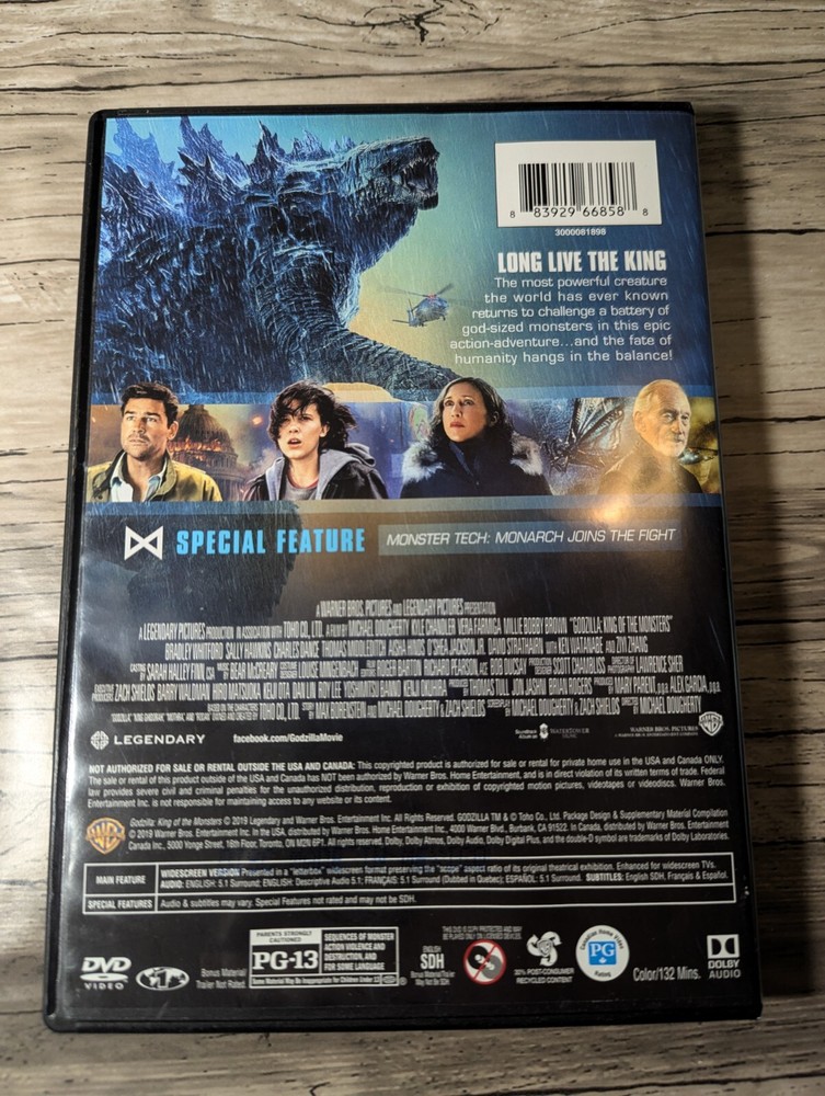 Get ready for an epic adventure with Godzilla: King of the Monsters on DVD. Directed by Michael Dougherty, this science fiction horror film is a must-watch for fans of the genre. The movie was released in 2019 by Warner Home Video and is available in DVD format. The movie features the iconic Godzilla battling it out against other monsters in an action-packed plot. With incredible visuals and thrilling moments, this DVD is perfect for any movie lover. Don't miss out on the chance to own this exciting addition to your collection.