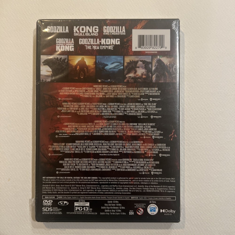Celebrate the 10th anniversary of the Godzilla/Kong Monsterverse with this 5-film collection DVD. Featuring all the films in the series, this collection is a must-have for any fan of the iconic monsters. The DVD is in the region code 1 and is rated PG-13. The collection includes the 2024 release of Godzilla/Kong Monsterverse, along with 4 other films, making it a great addition to any movie collection. The DVD is in the format of a disc and is produced by Warner studio. Get ready to embark on an exciting journey through the Monsterverse with this amazing collection.