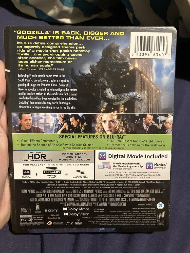 This Godzilla Limited Edition Steelbook is a must-have for fans! The 4K UHD, Blu-ray, and Digital combo looks stunning, and the factory-sealed condition ensures it's pristine. The region-free discs play flawlessly, and the detailed images match exactly what you get. Fast shipping with tracking makes it even better—highly recommended!