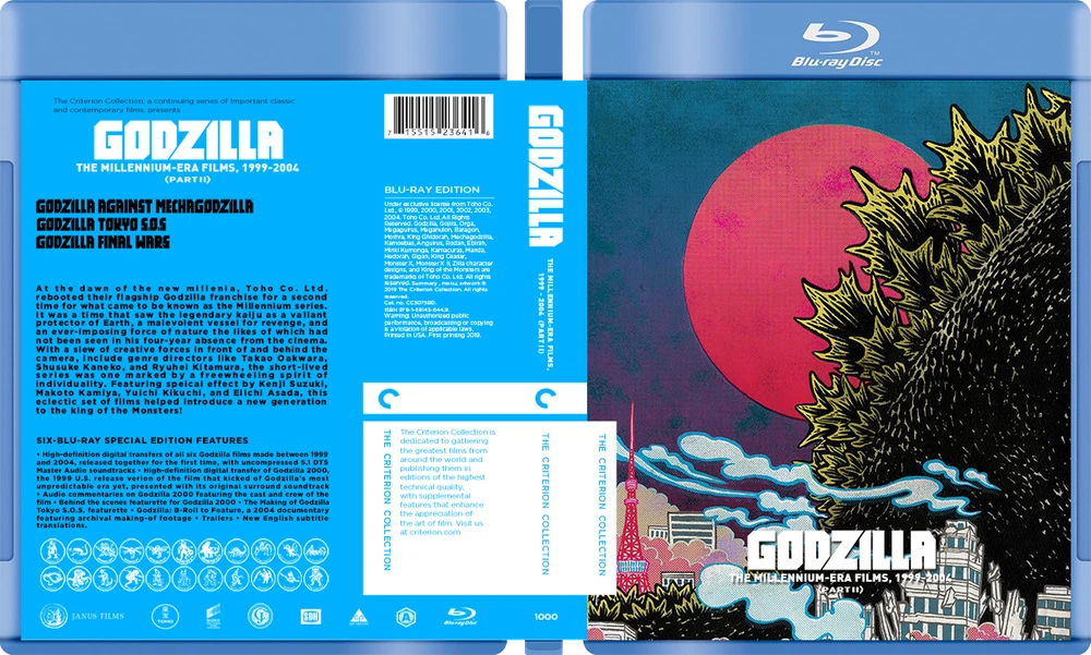 You're buying two Custom Blu-ray Covers W/ Blu-ray Cases: Godzilla Millennium-Era Collection Part 1 and Part 2 What is included: Godzilla Millennium-Era: You will get two custom Blu-ray covers placed inside a two new empty (3-Disc) blu-ray cases. ( No Discs are included ) Spine Measurements are 22MM for the Case / Cover Shipping is now included in all orders Thanks!