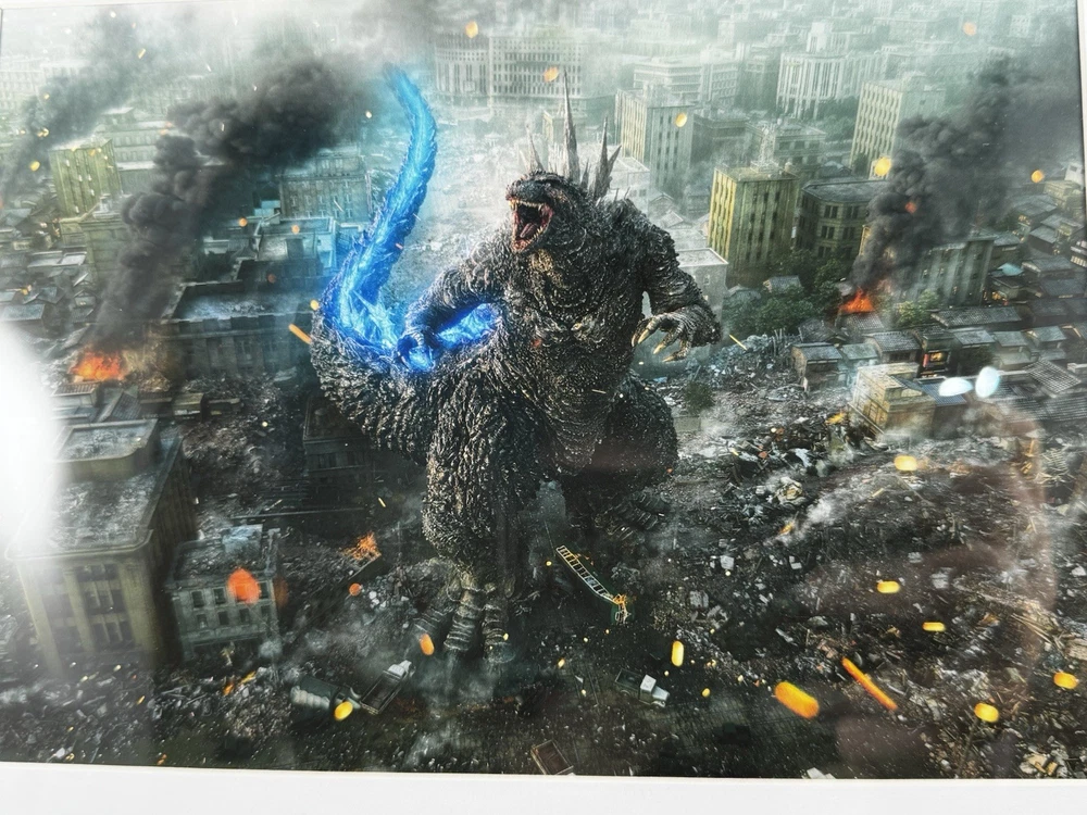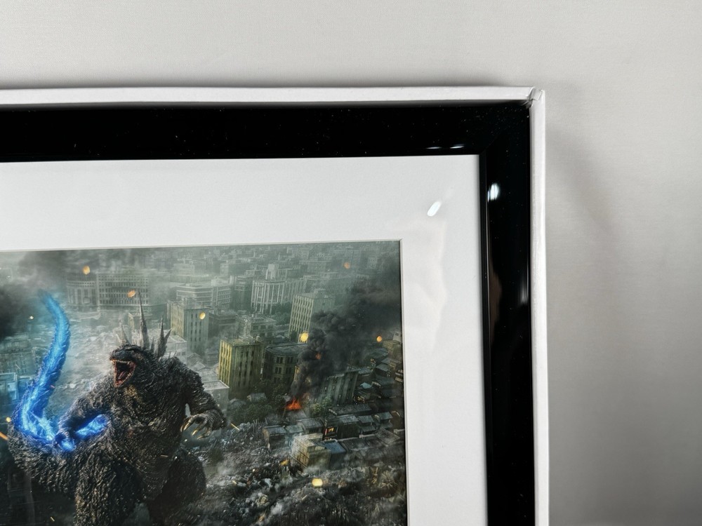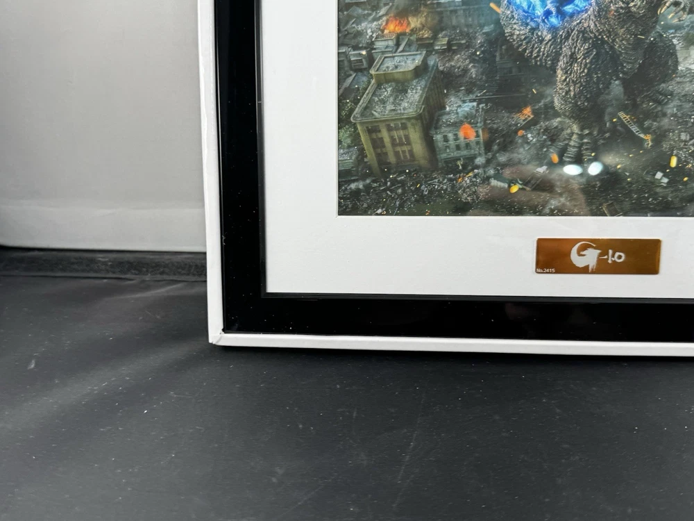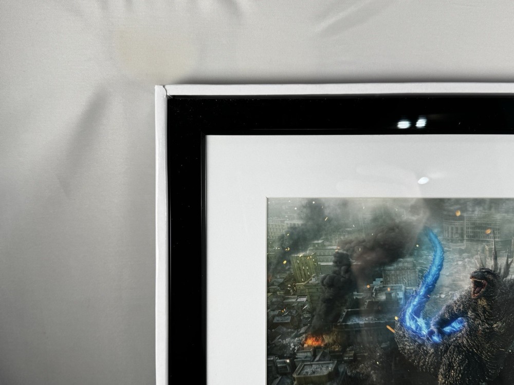 Godzilla Minus One 10x12 FRAMED MATTED PHOTO FROM THE 4K Ultra HD Blu-ray JAPAN. This beautiful photo was only available in Japan when purchasing the 4K box set . Comes framed and matted along with a small gold plaque.