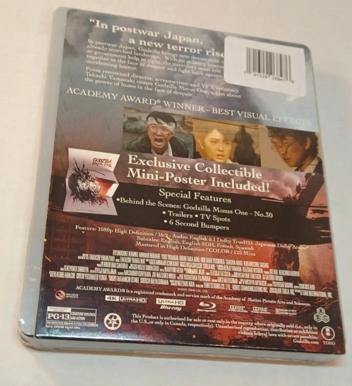 *** Godzilla Minus One 4K Steelbook (4K+Blu-ray)-NEW *** Brand NEW (Sealed) Shipping within One Business Day with USPS Tracking Number