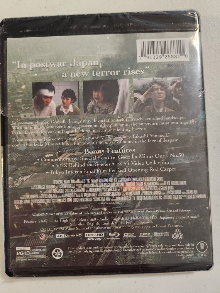 Item Description Up for sale is a Godzilla Minus One (4K Ultra HD, 2023) Shipping We gladly combine shipping. We ship according to total weight and not per item. We will send an invoice for combined shipping after purchases are complete. Returns We work really hard to provide excellent customer service and making sure you are satisfied with your purchase. If you are not 100% satisfied with your item please contact us immediately prior to leaving any neutral or negative feedback. Returns are accepted within 30 days of item being received by customer. Please contact us directly before leaving feedback and we will resolve any issues. If the item is damaged or defective please communicate via Ebay messaging and we will be happy to exchange (if applicable) or provide a full refund. Buyers will pay for return shipping on non-defective or non-damaged items and only the purchase price of the item will be refunded. Feedback and Seller Ratings We are working hard to earn positive feedback and 5 stars. This helps us to keep prices and shipping low for our customers. If for any reason you are unhappy with your item and cannot leave positive feedback and 5 stars, please contact us before leaving feedback or comments . We will work with you to resolve any issues. Thank you for looking!!!!