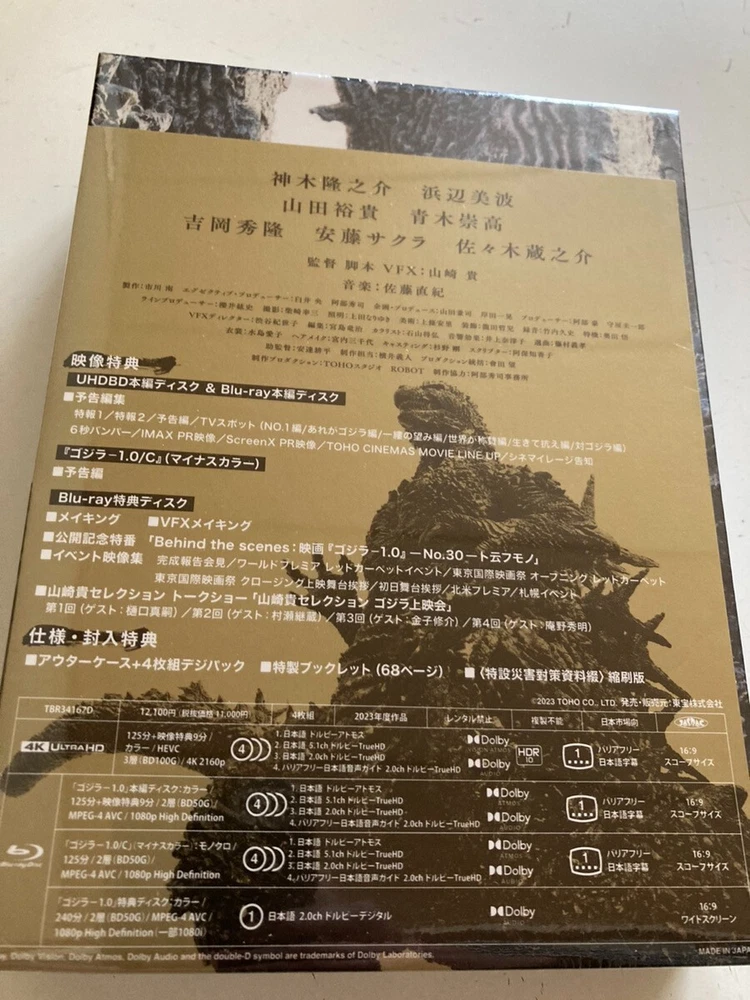 *Description* Godzilla Minus One 4K Ultra HD Blu-ray 4-Disc Deluxe Edition Set This item is Pre-sale. Scheduled to be released in May 1. Release Date : May.1.2024 Brand : Toho Condition : New (unused) TBR-34167D Production : JAPAN Language : Japanese Product introduction Number of discs: 4 (1 Ultra HD Blu-ray, 3 Blu-rayDisc Video) ★Enclosed benefits/specifications ●4-disc digipak + outer case specification ●Special booklet ●〈Special disaster countermeasure materials〉Reduced edition *Payment* We accept only Payoneer. *Shipping* FedEX international Delivery with tracking Typically 5-10 days. Please allow for up to 2 weeks in the event of unexpected (Depending on the country, it will be shipped by DHL or Japan post ). If the address cannot be shipped, the order will be canceled. Estimated delivery time of actual may vary depending on the country or region of the shipping address. It sometimes takes a month and more by the economy arrived according to condition in flight schedule or customs. *International Buyers - Please Note* Import duties, taxes and charges are not included in the item price or shipping charges. These are the buyer's responsibility. -Please check with your country's customs office to determine what these additional costs will be prior to bidding/buying. -These charges are normally collected by the delivering freight (shipping) company or when you pick the item up - do not confuse them for additional shipping charges. -We do not mark merchandise values below value or mark items as gifts - US and International government regulations prohibit such behavior. *Return* If you want to return items to me, please contact to us first. Thank you for reading last.