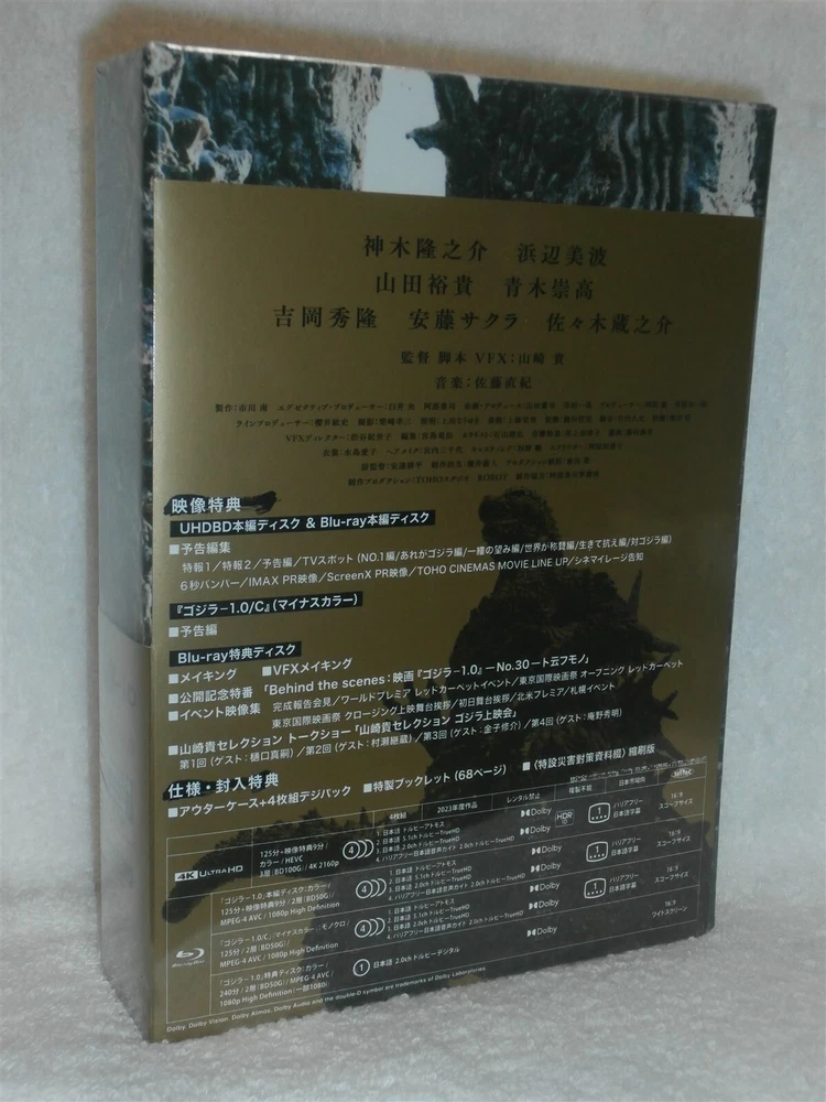PLEASE READ BELOW BEFORE BIDDING AND ASKING ANY QUESTIONS ITEM DESCRIPTION This 4-Disc 4K/BLURAY is BRAND NEW!! FACTORY SEALED!! NEVER OPENED!! It includes all the original cases, covers, inserts and, of course, the disc(s) itself. Godzilla Minus One / Film synopsis Japan has barely recovered from the Second World War when a gigantic peril emerges off the coast of Tokyo. Koichi, a deserter traumatised by his first confrontation with Godzilla, sees this as an opportunity to redeem his conduct during the war. [First Limited Edition Benefits] · 4K Ultra HD Blu-ray × 1 · Blu-ray × 3 · Special booklet · Outer case · Special disaster countermeasure materials Reduced edition [Spec/Bonus] - 4-disc digipak + Outer case - Special booklet - Reduced edition 4K UHD Blu-ray release of "Godzilla Minus One (Godzilla -1.0)", a 2023 Japanese sci-fi action film directed, written, and with visual effects by Takashi Yamazaki. It is Toho's 33rd Godzilla film and stars Ryunosuke Kamiki. In the film, postwar Japan deals with the emergence of Godzilla... [Main story DISC? 4K Ultra HD Blu-ray] Main story 125 minutes / 3 layers (100G) / 4K 2160p 16:9 Scope size / Dolby Vision Audio: (1) Japanese Dolby Atmos (2) Japanese 5.1ch Dolby TrueHD (3) Japanese 2.0ch Dolby TrueHD (4) Barrier-free Japanese audio guide 2.0ch Dolby TrueHD Subtitles: Barrier-free Japanese subtitles [Main story DISC? Blu-ray] Main story 125 minutes / Trailer editing / 2 layers (BD50G) / 1080p High Definition 16:9 Scope size Audio: (1) Japanese Dolby Atmos (2) Japanese 5.1ch Dolby TrueHD (3) Japanese 2.0ch Dolby TrueHD (4) Barrier-free Japanese audio guide 2.0ch Dolby TrueHD Subtitles: Barrier-free Japanese subtitles [“Godzilla-1.0/C” main story DISC? Blu-ray] Main story 125 minutes / "Godzilla-1.0/C" trailer / 2 layers (BD50G) / 1080p High Definition 16:9 Scope size Audio: (1) Japanese Dolby Atmos (2) Japanese 5.1ch Dolby TrueHD (3) Japanese 2.0ch Dolby TrueHD (4) Barrier-free Japanese audio guide 2.0ch Dolby TrueHD Subtitles: Barrier-free Japanese subtitles [Bonus DISC Blu-ray] Recording length: Undetermined / 2 layers (BD50G) / 16:9 / 1080p High Definition (some 1080i) Audio: Japanese 2.0ch Dolby Digital <Contents (Bonus DISC)> ¦Making ¦VFX making ¦Release commemoration special program Behind the scenes -No.30-Tounfumono'' ¦Event video collection Monday, September 4, 2023: Completion report press conference Wednesday, October 18, 2023: World Premiere Red Carpet Event Monday, October 23, 2023: Tokyo International Film Festival Opening Red Carpet Wednesday, November 1, 2023: Tokyo International Film Festival Closing Screening Stage Greetings November 3, 2023 (Friday/Holiday): Opening day stage greeting Wednesday, November 8, 2023 - Friday, November 10, 2023: North American Premiere Wednesday, November 29, 2023: Sapporo event ?Takashi Yamazaki Selection Talk Show Friday, September 15, 2023: “Takashi Yamazaki Selection Godzilla Screening” 1st (Guest: Shinji Higuchi) Friday, September 29, 2023: “Takashi Yamazaki Selection Godzilla Screening” 2nd (Guest: Keizo Murase) Friday, October 13, 2023: “Takashi Yamazaki Selection Godzilla Screening” 3rd (Guest: Shusuke Kaneko) Friday, October 27, 2023: “Takashi Yamazaki Selection Godzilla Screening” 4th (Guest: Hideaki Anno) <Preview editing (main disc ?)> ¦Special news 1 and 2 ¦Trailer ¦TV spot NO.1 edition / That's Godzilla edition / A glimmer of hope / The world praises edition / Live and resist edition / Against Godzilla edition ¦6 seconds bumper ¦IMAX PR video ¦ScreenX PR video ¦TOHO CINEMAS MOVIE LINE UP ¦Cinema erasure announcement Japan after the war. From nothing to negative. <Story> Live and resist. Godzilla suddenly appears in Japan, which has become a scorched earth. Is there a way for the nameless people left behind to survive and fight back? OUR TERMS AND GUARANTEES We will contact the auction winner(s) via email within 24 hours of auction close with any specific instructions that may be necessary to complete the transaction. We will also notify the auction winner(s) when their order has been shipped by sending an email to their ebay email address. WE DO NOT SELL illegal bootleg tapes, copies, screeners, or any type of illegally burned CDs/DVDs! ALL ITEMS ARE FACTORY ORIGINALS and, unless otherwise noted, include their ORIGINAL US factory made cases, inserts/game book and, of course, the items themselves. All DVDs are GUARANTEED. If you receive a damaged, defective or otherwise unusable item from us, please inform us within 15 days of shipment and we will replace the defective product. In the event that the defective item is no longer available, we will substitute for another item, credit your account or issue a refund minus the Shipping. Buyer must make contact within 3 days of the end of auction and payment must be made within 10 days of the end of auction. Please have funds ready to send when you are bidding. Your personal information will never be shared or sold to anyone. Your transaction is strictly confidential, and you will receive your product in discreet packaging . Finally, there should NEVER be a reason to leave us negative feedback. That is NOT the proper way to get our help with a problem, just contact us and give us a chance to provide an appropriate solution. Permanently hurting our reputation by leaving us negative feedback or threatening negative feedback will NOT get you the service you are looking for, again, just email us if you have a problem with your purchase. PAYMENT TERMS Payment is expected within 10 days after the auction closes. Please include the following with your payment: Username Auction number(s) Item name Shipping Address We accept the following forms of payment: . PAYPAL Credit Cards (Contact us for details) SHIPPING TERMS Your DVD(s) will be shipped within 48 hours of receipt of payment. All DVDs will be shipped discreetly . The flat rate shipping fee using USPS FIRST CLASS MAIL is $ 3.00 for the 1st DVD, $2.00 for eac