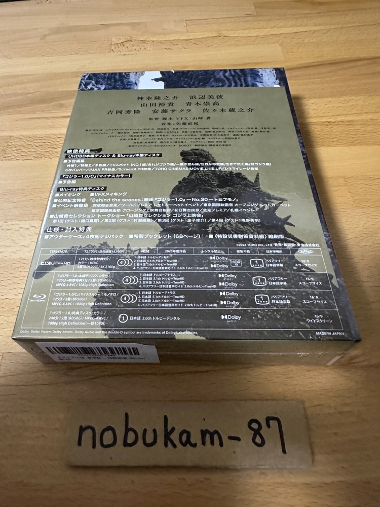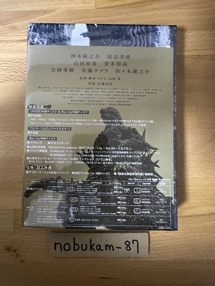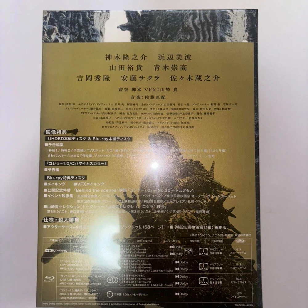 Description Condition : Brand New / Factory Sealed Release Date : May.1.2024 Region Code : Free ⭐️ Language : Japanese⭐️ ⭐️ Subtitles : None⭐️ Text : Japanese Disc : 4 (Blu-ray) Time : This item is First Limited Edition. This item is First Limited Edition. [First Limited Edition Benefits] ・ 4K Ultra HD Blu-ray × 1 ・ Blu-ray × 3 ・ Special booklet ・ Outer case [Spec/Bonus] - 4-disc digipak + Outer case - Special booklet - <Special disaster countermeasure materials> Reduced edition 4K UHD Blu-ray release of "Godzilla Minus One (Godzilla -1.0)", a 2023 Japanese sci-fi action film directed, written, and with visual effects by Takashi Yamazaki. It is Toho's 33rd Godzilla film and stars Ryunosuke Kamiki. In the film, postwar Japan deals with the emergence of Godzilla... [Contents] Disc 1: 4K Ultra HD Blu-ray Disc 2: Blu-ray Disc 3: Blu-ray: Godzilla Minus One/C (black-and-white version) Disc 4: Blu-ray: Bonus Disc (making-of, VFX making-of, promotional TV special "Behind the scenes - No.30 - To Iu Mono," and event footage collection) [Trailer collection (Disc 2)] - Special News 1・2 - Trailer - TV spot - 6 seconds bumper - IMAX PR video - ScreenX PR video - TOHO CINEMAS MOVIE LINE UP - Cinemileage announcement Shipping We ship using FedEx, DHL and Japan Post. Terms of Sale Your order will be shipped within 1~10 business days (excluding Saturday, Sunday & Japan's Holiday) after the payment is confirmed. International Buyers - Please Note: Import duties, taxes,VAT and charges are not included in the item price or shipping cost. These charges are the buyer's responsibility. Please check with your country's customs office to determine what these additional costs will be prior to bidding or buying.