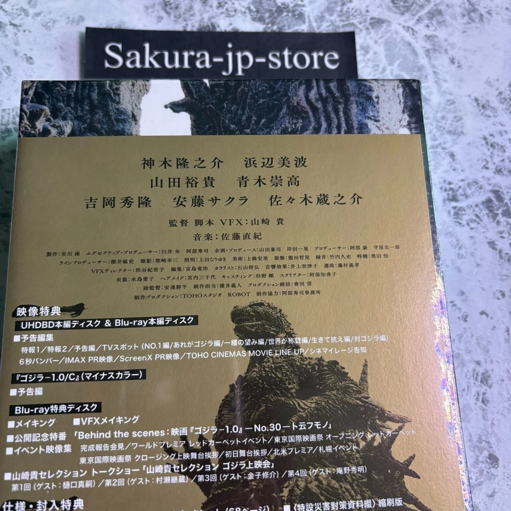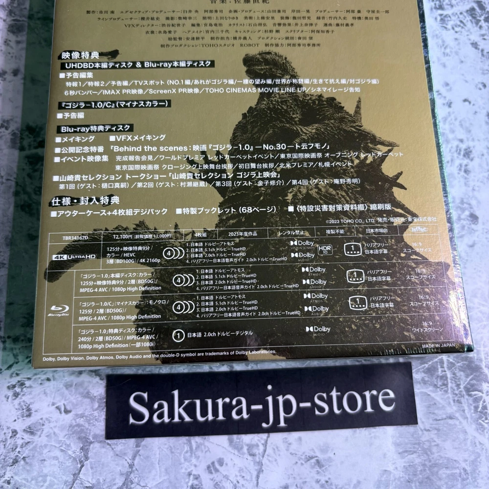 Godzilla Minus One Deluxe Edition 4K Ultra HD+3 Blu-ray+2 Booklet+Case Japan New Description Condition: New Godzilla Minus One Deluxe Edition 4K Ultra HD+3 Blu-ray+2 Booklet+Case Japan New ※Japanese subtitles only Payment Please pay within 5 days after the auction closed. International Buyers; Please Note: Import duties, taxes, and charges are not included in the item price or shipping cost. These charges are the buyer's responsibility. Please check with your country's customs office to determine what these additional costs will be prior to bidding or buying. We never accept undervalue offers. Shipping About other area, please ask me. 【Handling time】 We cannot ship on Saturdays, Sundays and Japan holidays. In the case of reserved products, the shipping procedure will be after the sale. Regardless of the delivery method, there may be a delay in delivery time than expected during customs waiting periods, postal delays, and busy periods such as the holiday season. Returns Returns are accepted ONLY if the item was not the item described. International Buyers - Please Note: * Import duties, taxes and charges are not included in the item price or shipping charges. These charges are the buyer's responsibility. * Please check with your country's customs office to determine what these additional costs will be prior to bidding/buying. * These charges are normally collected by the delivering freight (shipping) company or when you pick the item up - do not confuse them for additional shipping charges. * We do not mark merchandise values below value or mark items as "gifts" - US and International government regulations prohibit such behavior. About us Thank you for visiting my page. We am very passionate about quality Japanese products. We want to deliver good Japanese products to people all over the world through ebay. We am always trying to give you the peace of mind by offering a courteous and fast service. Please feel free to contact us if you have any questions. We will surely help you.