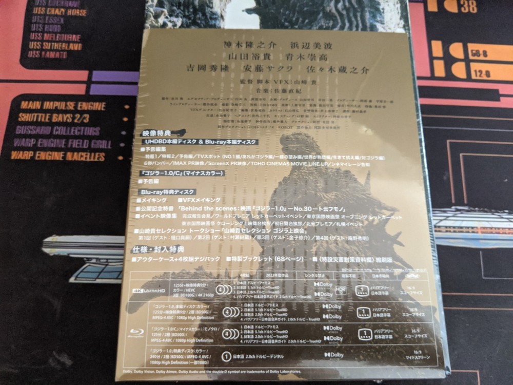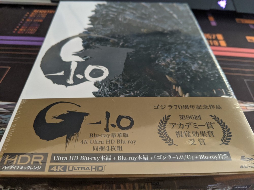 This is my personal copy of the OUT OF PRINT official Godzilla Store USA exclusive release of the "Godzilla: Minus One" deluxe collector's edition. This edition is the same that Japan got. It is brand new and sealed in NM/M condition. Comes with "Godzilla: Minus One" on 4K UHD and bluray, "Godzilla: Minus One Minus Color" on bluray, & a 4th disc containing Special Features (might not have english subs on 4th disc). The Deluxe Edition is sold out on the Godzilla Store and is now OOP Out of Print. Writeup from the Godzilla Store is as follows: "Exclusively available on the Godzilla Store, the box set mirrors the 4-disc deluxe release in Japan. The Deluxe Japan Collector’s Edition not only preserves the same gorgeous packaging as the Japan release, but also all the same content with the addition of English menus and the option to select English and Spanish subtitles for Godzilla Minus One and Godzilla Minus One/Minus Color.