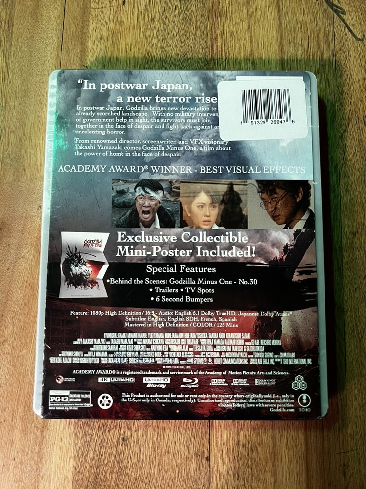 Factory sealed, mint Steelbook, Godzilla Minus One 4K Limited Edition, with digital version. Very hard to come by! Free shipping! I ship super safe, boxed and bubble wrapped, so unless Godzilla attacks the UPS truck, this will make it to you in flawless condition. I will ship the day you pay, with full tracking by UPS. Please contact me if you have any questions or want more pictures. Offers welcome. Thanks!