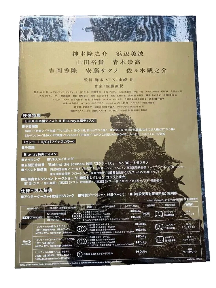 New Godzilla Minus One Deluxe Edition 4K Ultra HD+3 Blu-ray+2 Booklet+Case Japan Discription Please feel free to contact us if you have any question. Please check the condition of the product with the photo. All items are what you see in the photos. I am selling different colors of the same product and selling as a set, so please take a look at my store. Shipping We usually ship within 3 - 7 business days of receiving cleared payment. We ship using FedEx, DHL, UPS, Japan Post. If you wish to specify a shipping company, please purchase the following links at the same time. Some items may not be shipped by the specified method. In that case, we will refund your money. Even items with free shipping may incur an additional cost, called a " remote area fee " depending on the region.(This is especially common in Australia.) In such cases, please note that it will cost about $20-$30 in addition to the price of the item. Return Under eBay's return policy, we accept free returns for 30 days. If you don't like it, you can return it, so buy with confidence. International Buyers - Please Note: Import duties, taxes and charges are not included in the item price or shipping charges. These charges are the buyer’s responsibility. Please check with your country’s customs office to determine what these additional costs will be prior to bidding/buying. These charges are normally collected by the delivering freight (shipping) company or when you pick the item up do not confuse them for additional shipping charges. I do not mark merchandise values below value or mark items as "gifts" - US and International government regulations prohibit such behavior.
