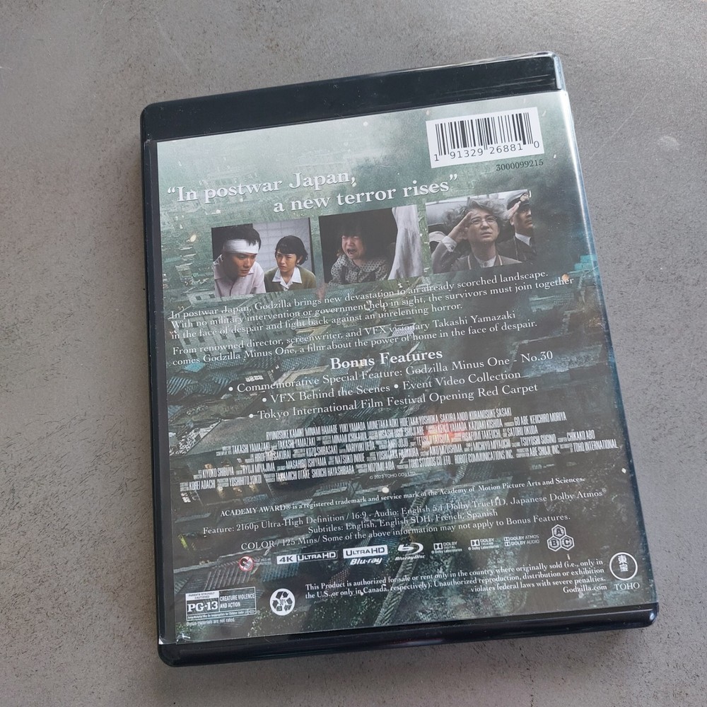 Absolutely thrilled with this 4K UHD release! The picture quality is stunning, bringing Godzilla's epic scale and destruction to life like never before. Even though the plastic wrap is gone, the disc is pristine and plays flawlessly. A must-have for any kaiju fan's collection!