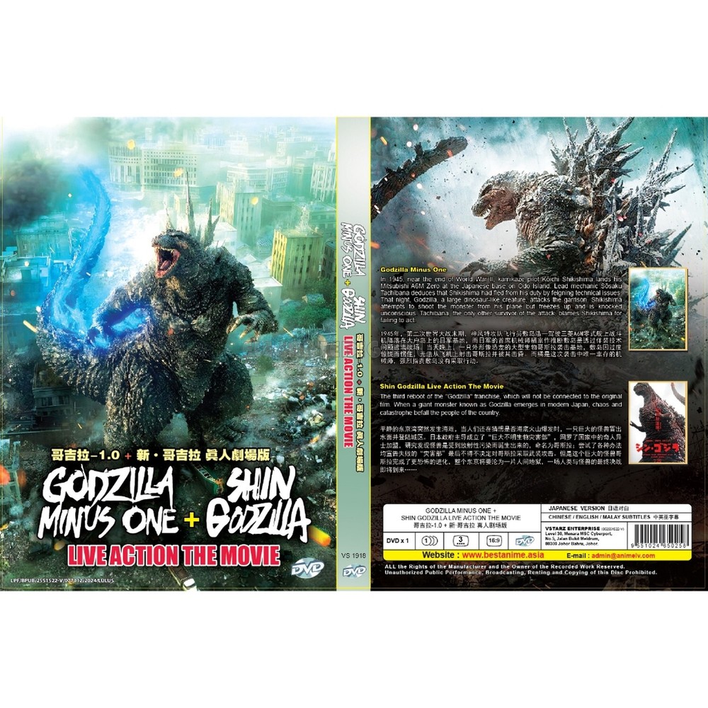 Created with Eselt - Mobile Optimized Templates for eBay Sellers Created with Eselt - Mobile Optimized Templates for eBay Sellers Created with Eselt - Mobile Optimized Templates for eBay Sellers Godzilla Minus One + Shin Live Action Movies DVD English Subtitle, All Region Product Description: No of Disc : 1 Discs (2 Movies) Version : Japanese Subtitles : Chinese / English/ Malay Format : DVD / NTSC & All Region Code (16:9) Synopsis: Godzilla Minus One Post-war Japan is at its lowest point when a new crisis emerges in the form of a giant monster baptized in the horrific power of the atomic bomb. Shin Godzilla All of the sudden, a giant creature immediately appears, destroying town after town plunged into chaos with its landing reaching the capital. This mysterious giant monster is named ""Godzilla""." Created with Eselt - Mobile Optimized Templates for eBay Sellers Payment Currently, we accept payment through eBay-managed payment. Shipping The products will be shipped via SingPost / Quantium Solutions from Malaysia. Handling time is 1-3 working days. Your goods will be shipped with a valid tracking number. All products are packed, and layered with bubble wrap to reduce damages during shipment delivery. Estimate delivery is between 11 to 23 business days. Returns If you have any problem with the order, do contact us via eBay message. We are glad to assist you and solving the problem as soon as possible. Items can be returned within 30 days in a good condition. Other Note: Import duties, taxes, and additional charges are not included in the item price or shipping charges. Please be aware this custom import duties and taxes are buyer's responsibility.