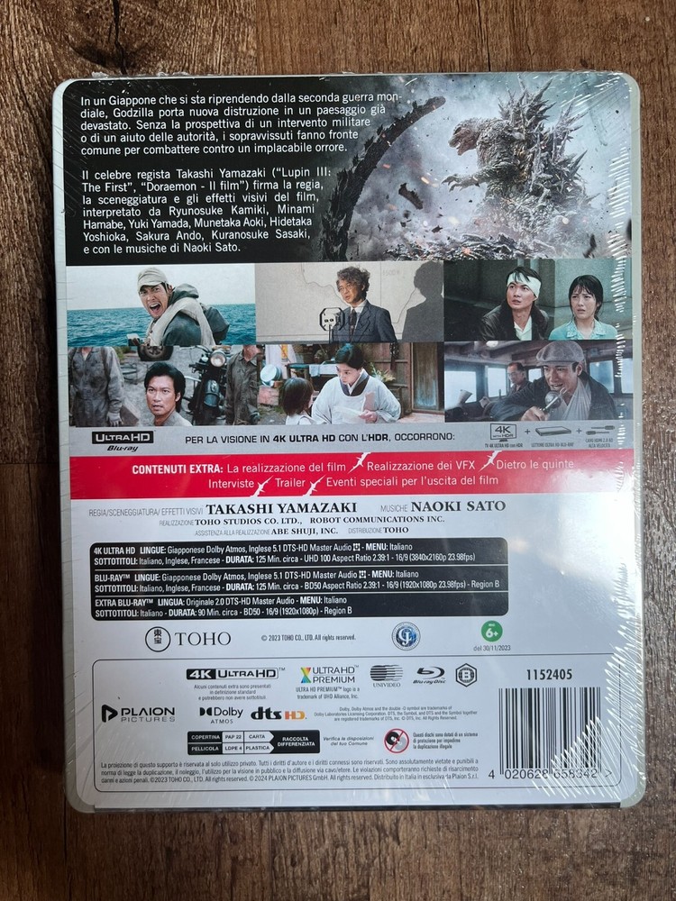 Up for auct ion : Godzilla Minus One with Steelbook Case (4K UHD + Blu-ray, EU Import, Region Free). This is an Italian import, but the menus/audio track will default to English in your player automatically. I tem is BRAND NEW/SEALED ! Video Codec: HEVC / H.265 Resolution: 4K (2160p) HDR: HDR10 Aspect ratio: 2.39:1 Original aspect ratio: 2.39:1 Audio Japanese: Dolby Atmos English: DTS-HD 5.1 Subtitles English, Italian, French Discs 4K Ultra HD Blu-ray Disc Two-disc set (1 BD-50) Packaging SteelBook Playback 4K Blu-ray: Region free 2K Blu-ray: Region free Ships within 24 hours via USPS Priority Mail (2-3 days) with delivery confirmation. Returns accepted within 30 days of receiving your item if you're not 100% satisfied! Return shipping will be paid for by the buyer unless a mistake is made on my part. Sorry, no international shipping is available. PayPal payments only please. Bid with confidence! 30 day money back guarantee - all orders go out the following business day - highly rated for BLAZING FAST shipping