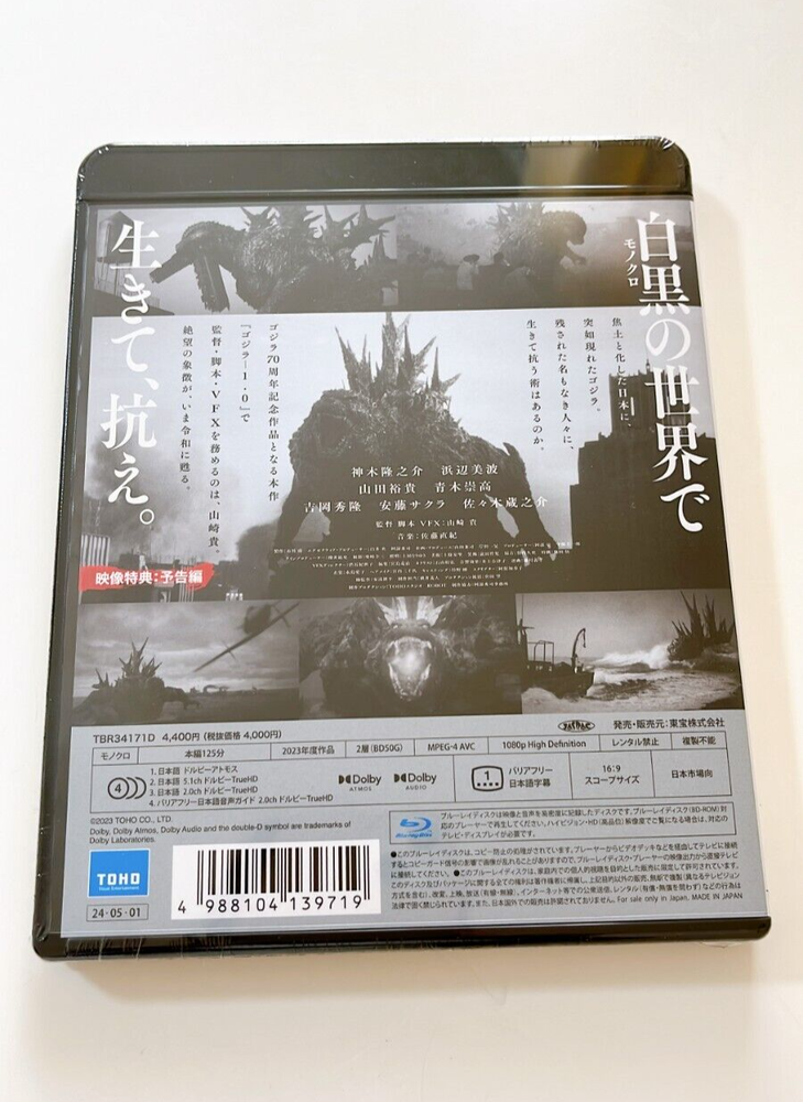 Description Duration : 2 hours 5 min. Postwar Japan. From nothing to negative. Live, resist. Godzilla suddenly appears in the scorched earth of Japan. Is there a way for nameless people left behind to live and resist? In this work, which commemorates the 70th anniversary of Godzilla, "Godzilla-1.0," Directed, written, and with VFX by Taka Yamazaki. The symbol of despair is revived in the Reiwa era. [Main feature DISC Blu-ray] Main feature 125 minutes (black and white version of "Godzilla-1.0") / "Godzilla-1.0/C" trailer / 2 layers (BD50G) / 1080p High Definition 16:9 Scope size Audio: (1) Japanese Dolby Atmos (2) Japanese 5.1ch Dolby TrueHD (3) Japanese 2.0ch Dolby TrueHD (4) Barrier-free Japanese audio guide 2.0ch Dolby TrueHD Subtitles: Barrier-free Japanese subtitles Ryunosuke Kamiki, Minami Hamabe, Yuki Yamada, Takahiro Aoki, Hideaki Yoshio, Sakura Ando, Kuranosuke Sasaki Director Screenplay VFX: Taka Yamazaki Music: Naoki Sato Payment We accept Managed Payment . Payment is due within 1 day. We will ship the item 5 business days after your payment clears. Shipping ・Economy:Shipping Duration・・・1 week - 2 weeks / With tracking number and insurance. ・ Expedited : Shipping Duration ・・・ 3 days - 7 days / With tracking number and insurance. Shipping is available from Monday to Friday. Weekends are not available because post office is closed. International Buyers - Please Note: Please Note : Import duties, taxes, and charges are not included in the item price or shipping cost. These charges are the buyer's responsibility. Please check with your country's customs office to determine what these additional costs will be prior to bidding or buying.