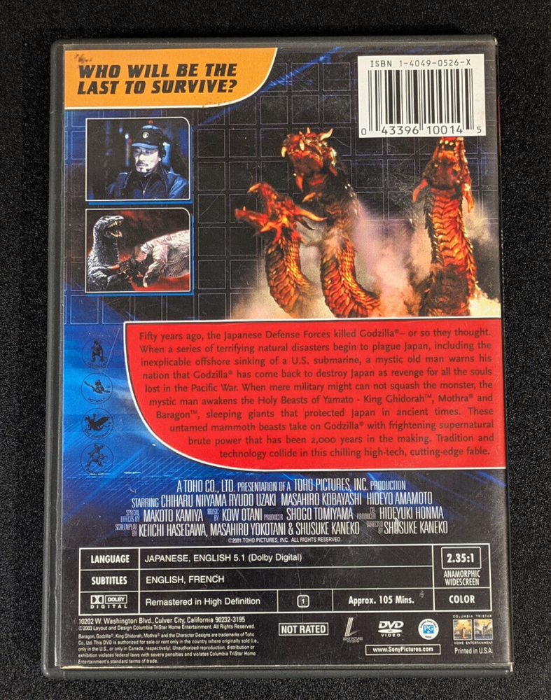 Godzilla Mothra And King Ghidorah: Giant Monsters All-Out Attack DVD (2001) DVD is tested & working. Combined shipping available with our other products. Please let us know if you have any questions.