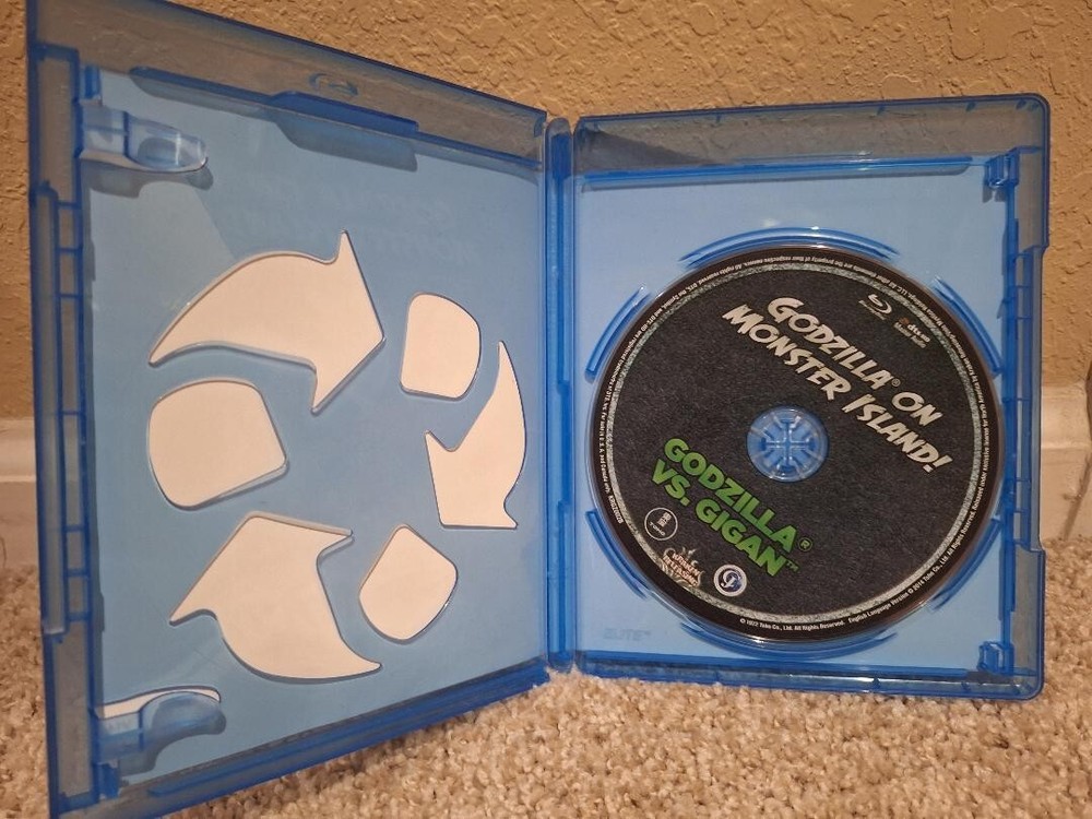 Godzilla On Monster Island! Godzilla vs Gigan (Blu-ray) Clean Disc with no signs of use. The case has some typical signs of shelf wear....