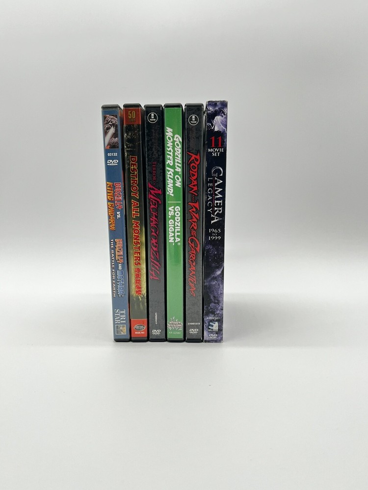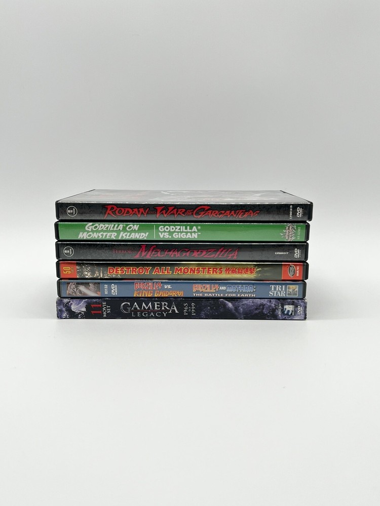 This is a rare set of 5/6 DVDs featuring the iconic Japanese fantasy movie, Godzilla. The DVDs are in the DVD format and belong to the sub-genre of Japanese movies. The genre of the movies is fantasy, and the movie/TV title is The Originals. These DVDs are a must-have for any movie collector or fan of Godzilla. Get your hands on this rare set today! These DVDs mostly related to kaiju (giant monster) movies, including titles featuring Godzilla and Gamera. - *Terror of Mechagodzilla* - *Godzilla on Monster Island (Godzilla vs. Gigan)* - *Rodan and War of the Gargantuas* - *Destroy All Monsters* - *Godzilla vs. King Ghidorah and Mothra* - *Gamera Legacy Collection (1965-1999)*