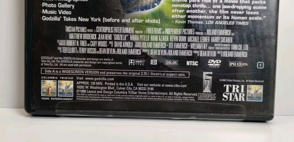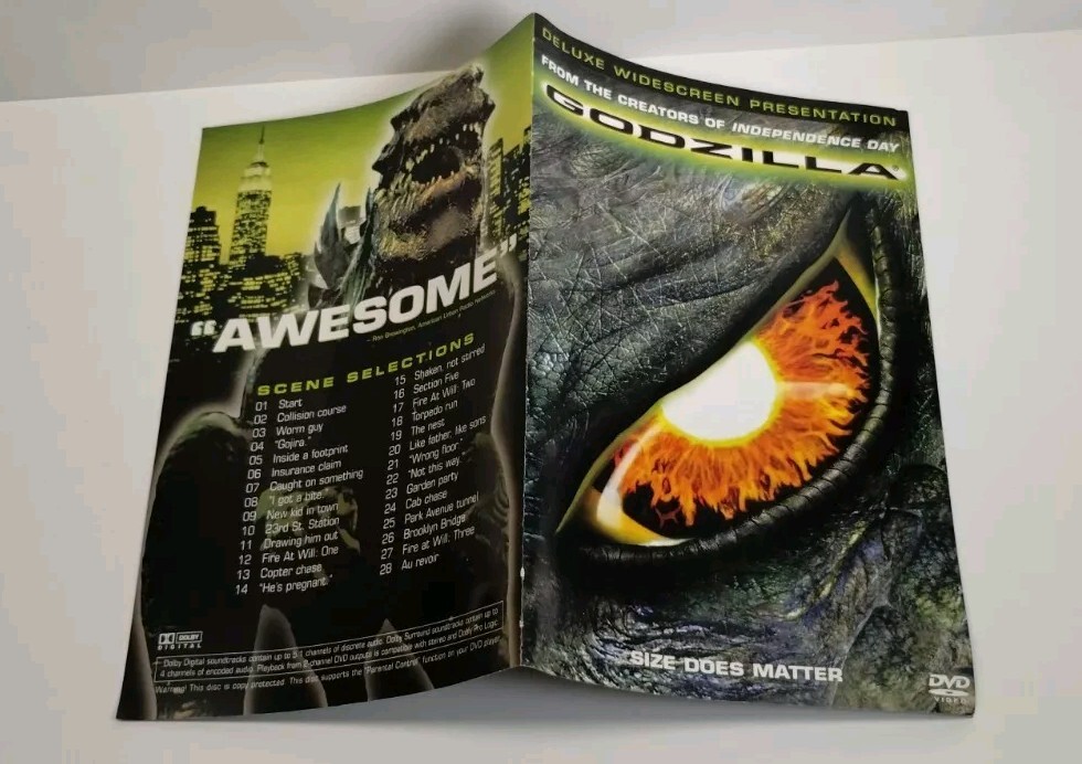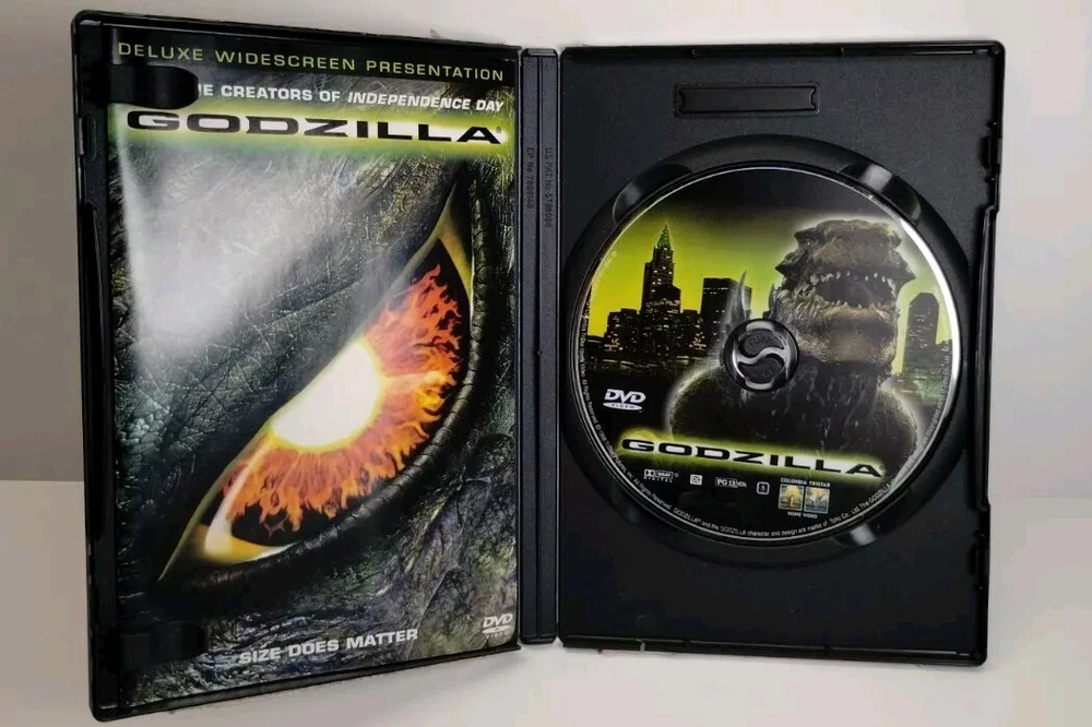Experience the thrill and excitement with this deluxe edition of the 1998 sci-fi film, Godzilla. Directed by Roland Emmerich and produced by Dean Devlin, this movie features the legendary creature that will surely keep you on the edge of your seat. The DVD format with an aspect ratio of 16:9 and features like commentary, book included, interactive, behind the scenes featurette, widescreen, and with subtitles would give you an immersive viewing experience. The movie is packaged in a tall/DVD case and has a PG-13 rating. With a runtime of 139 minutes, this DVD comes with NTSC video format, English subtitle language, and a region code of DVD:1 (US, Canada...). This cult classic is perfect for those who love horror, Japanese sci-fi movies, and action-packed films. Item description Please look closely at all images. I always identify what I can see, but I am not an expert. Shipping If you buy multiple items, we will combine shipping and refund you the difference. Similarly, if we overestimate shipping costs, we will also refund you. We ship items within two business days of purchase, unless there is a note on our site that we are away. Offers We entertain all reasonable offers. Returns accepted Questions? Please reach out! We try and get back to you as quickly as we can and are happy to send more information or pictures.