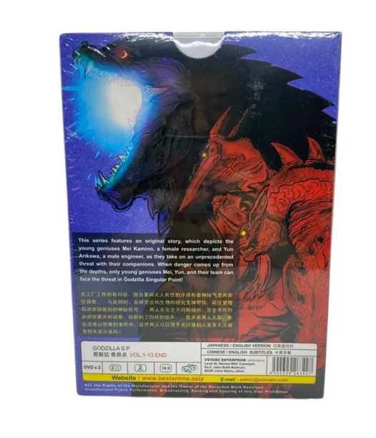 Absolutely thrilled with this Godzilla S.P anime set! The complete Vol 1-13 collection delivers stunning animation and an intense original story following Mei and Yun's battle against deep-sea threats. Love having both Japanese audio with English subs and the English dub option—perfect for any fan. The discs arrived quickly and in perfect condition. A must-have for any Godzilla enthusiast!