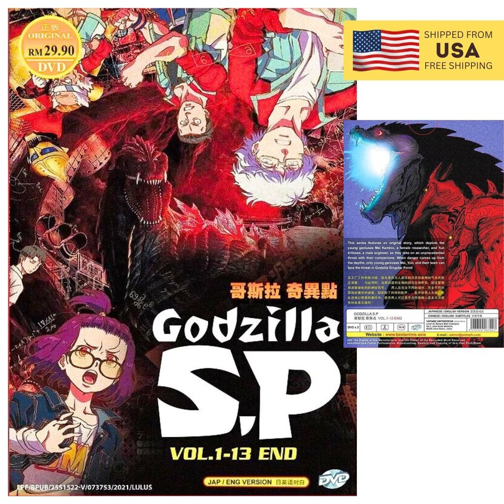 Godzilla S.P Singular Point Anime Complete TV Series (1-13 End) English Dub DVD PRODUCT DESCRIPTION Complete TV Series Vol. 1-13 End Audio Language: English/Japanese Subtitles: English/Chinese Condition: Authentic Brand NEW, Original Factory Sealed Region Code: ALL Region, Region FREE "0" (Able to play on DVD Players throughout the World) No. of Discs: DVD x 2pcs NOTICE We only sell GENUINE/ORIGINAL DVDs from licensed publisher in Malaysia. All DVDs come with Original Sealed Authenticated Sticker/Hologram by Malaysia Censorship Board. PAYMENT Currently, we accept payment through eBay-managed payment. FREE SHIPPING We ship via USPS from our warehouse in USA with a valid tracking number. Handling time is 1-3 working days. All products are packed securely and layered with bubble wrap to reduce damages during shipment delivery. Estimated delivery is between 1 to 5 business days . RETURNS If you have any problems with the order, do contact us via eBay message. We will do our best to assist you and will try to solve the problem as soon as possible. Items can be returned within 30 days in a good condition.