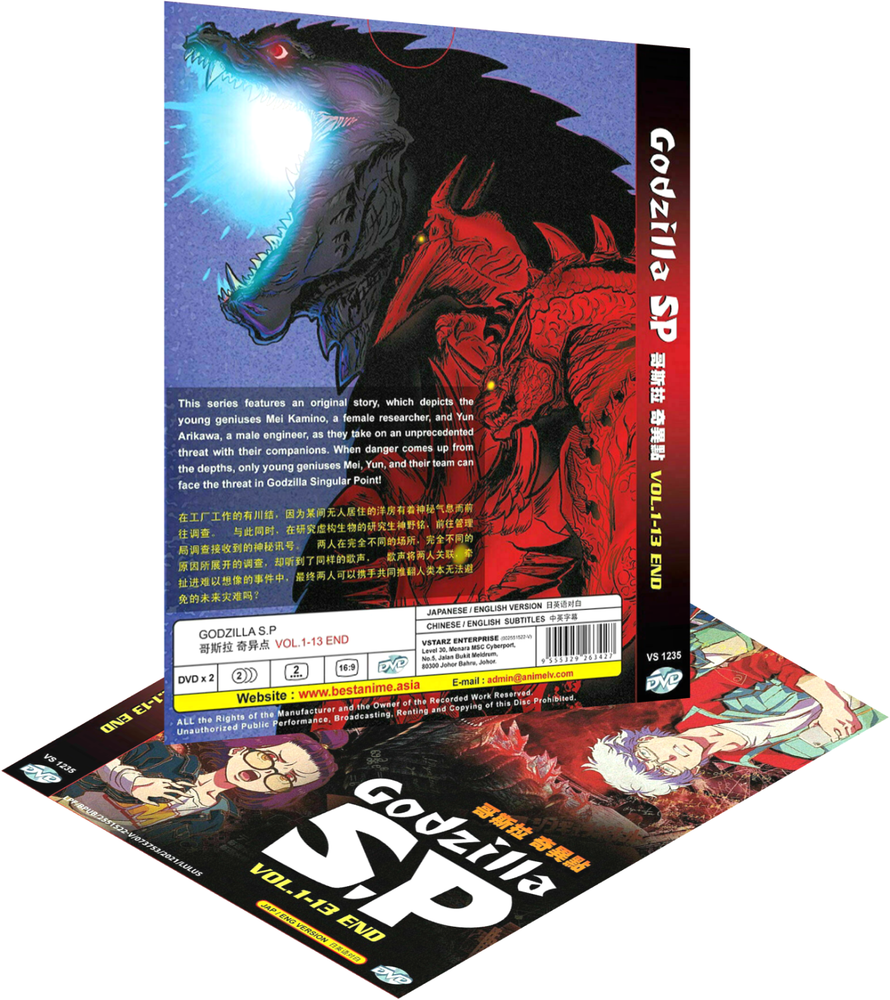 Created with Eselt - eBay Listing Template Editor Give us a call Send us a message Created with Eselt - eBay Listing Template Editor Our Store Seller Profile Feedback About us Contact Created with Eselt - eBay Listing Template Editor Godzilla S.P: Singular Point (VOL1-13 End) Anime DVD English dubbed Ø No. of Disc: 2 DVD (Vol 1-13 End) Ø Language: English/ Japanese Ø Subtitles: English/ Chinese Ø Picture Format: NTSC & All Region code Synopsis Engineer Yun Arikawa of the local "do-it-all" shop Otaki Factory investigates happenings in a Western-style house, long thought abandoned. Mei Kamino, a graduate student studying imaginary creatures, investigates mysterious signals received from Misakioku, the former Tsuguno district's administrative building. These two strangers, visiting completely different places as part of completely different investigations, both hear the same song. As they become united, they are led into a battle beyond imagination involving the whole world. Godzilla Singular Point features a brand new staff and original story which depicts the young geniuses as they take on this unprecedented threat to the universe with their companions. Created with Eselt - eBay Listing Template Editor Payment Currently we accept payment through eBay-managed payment Shipping The product will be shipped via Standard Shipping from US warehouse. Handling time is 1-3 working days. Your goods will be shipped with a valid tracking number. All products are packed and layered with bubble wrap to reduce damages during shipment delivery. Estimate delivery is between 1-5 business days. Returns If you have any problem with the order, do contact us via eBay message. We are glad to assist you and solve the problem as soon as possible. Items can be returned within 30 days in a good condition. Other Note: Import duties, taxes and additional charges are not included in the item price or shipping charges. Please be aware this custom import duties and taxes are buyer's responsibilty. Give us a call Send us a message