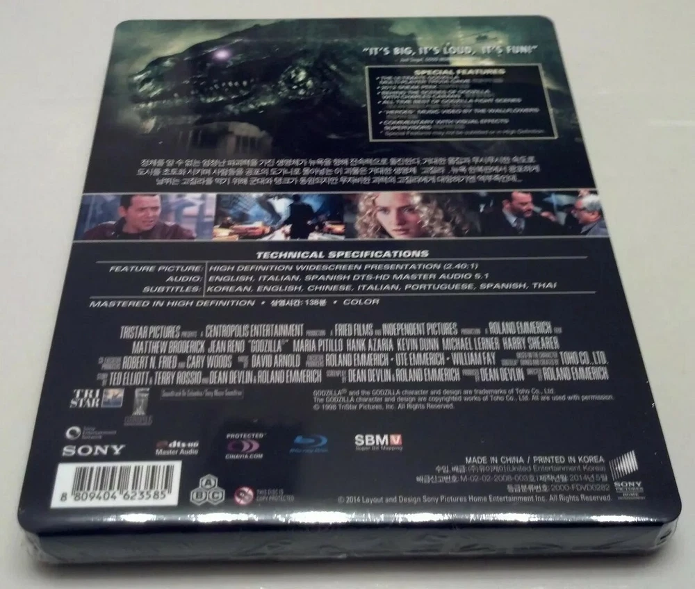 Winning Bidder receives Godzilla (STEELBOOK) Blu Ray 1998 Version ***SEALED*** Last 4 Pictures are for Reference Only This is a Korea Import Only 200 Copies Made SUPER RARE OOP!!!!! Not available in the US SIZE G2 (Blu Ray Size Case) Includes: Blu Ray Disc Blu Ray Disc is REGION FREE Will Play on ALL USA Blu Ray Players Will Include a Poly Bag so you can keep your steelbook safe once opened ~~~There are No visible Dents or Dings~~~ Movie will ship out the Same Day or Next day after Payment is Received Will Ship wrapped in bubble wrap and in a Box I will COMBINE Shipping $1.50 OFF Each Additional Item Won Feel free to email me any questions you may have. WILL SHIP TO ALL US STATES INCLUDING PUERTO RICO NO INTERNATIONAL BUYERS SORRY If you are planning to bid on multiple items to receive the combined shipping discount PLEASE message me and then wait for the invoice before paying Highest Bid WINS!!!! HAPPY BIDDING :)