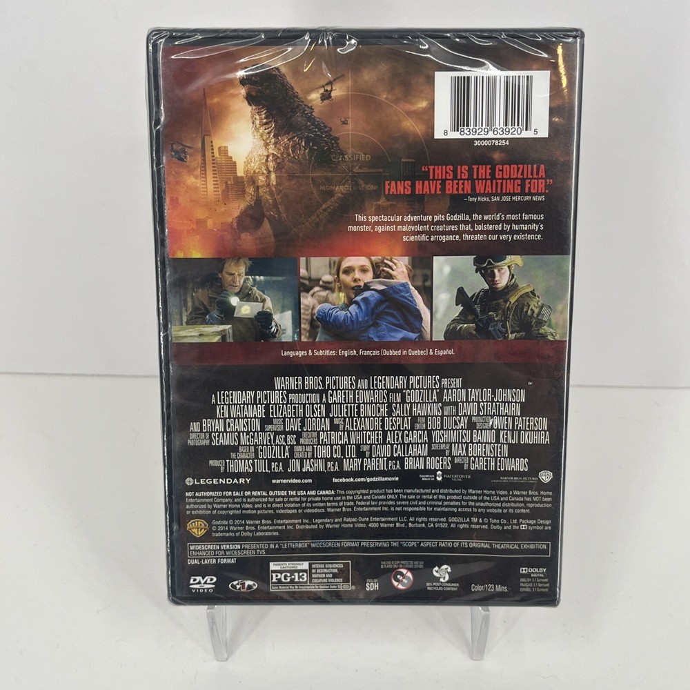 Experience the thrill of the horror genre with the special edition DVD of "Godzilla." This movie, directed by Gareth Edwards, features an all-star cast including Ken Wantanabe and Elizabeth Olsen. The DVD format is NTSC and comes in a tall/DVD case, making it a great addition to your collection. Rated PG-13, this science fiction film is a must-watch for fans of the sub-genre. The DVD includes features such as widescreen and is available in English, French, and Spanish. Released in 2014, this DVD is region code 1 (US, Canada...) and is brought to you by Warner Home Video. Get your hands on this sealed DVD now!