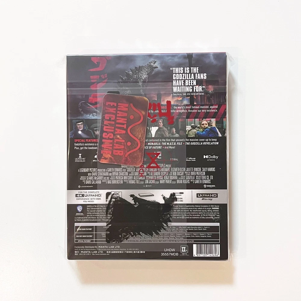 I tem Description [ME#42] Godzilla Steelbook (Double Lenticular Full Slip -B ) - WEA, Exclusive Steelcase designed by Manta Lab features "Full Glossy" Finish and "Debossed Title". - Double Lenticular Full Slip: 2 x 3D Lenticulars, Spot Glossy, Spot Matte, Spot Embossing - Premiums: Booklet, Postcards, Character Cards, Envelope, Exclusive Numbering Sticker, Exclusive Release Front Sticker, Exclusive Release Lenticular Sticker, Tip On. No. of Disc: 2 (Region: A,B,C) Audio Specifications: 4K 2160p Ultra High De fi nition. Audio: Dolby Atmos-TrueHD: English, DTS-HD Master Audio: French 7.1 NF, German 7.1 NF, Italian 7.1, Dolby Digital: English Descriptive Audio 5.1, Czech 5.1, French 5.1, Castilian & Latin Spanish 5.1, Hungarian 5.1, Polish 5.1/VO & Thai 5.1. BD 1080p High Definition. Audio: DTS-HD Master Audio: English 7.1, Dolby Digital: English Descriptive Audio 5.1, Czech 5.1, Hindi 5.1, Hungarian 5.1, Mandarin 5.1, Polish 5.1, Russian 5.1, Thai 5.1, Turkish 5.1 & Ukrainian 5.1. Subtitles: 4K Complex Chinese, English SDH, Castilian & Latin Spanish, Czech, Danish, Dutch, Finnish, French, German SDH, Hungarian, Italian SDH, Korean, Norwegian, Polish, Romanian, Swedish & Thai. BD Cantonese, Complex & Simplified Chinese, English, Arabic, Bahasa Indonesia, Bulgarian, Croatian, Czech, Estonian, Greek, Hebrew, Hungarian, Korean, Latvian, Lithuanian, Polish, Portuguese, Romanian, Russian, Serbian, Slovenian, Thai & Turkish. Special Feature: Discover explosive evidence not contained in the film that unravels the massive cover-up to keep Godzilla ’ s existence a secret in … • OPERATION: LUCKY DRAGON • MONARCH: THE M.U.T.O. FILE • THE GODZILLA REVELATION Plus, get the lowdown on this legendary monster in GODZILLA: FORCE OF NATURE • And More! Shipping Policy & Specifics We usually ship within 2 business days of receiving cleared payment. Item s will be securely wrapped in bubble wrap or foam box and shipped in a cardboard box. Payment Please pay within 2 days after bidding ends. International Buyers - Please Note: Import duties, taxes, and charges are not included in the item price or shipping cost. These charges are the buyer's responsibility. Please check with your country's customs office to determine what these additional costs will be prior to bidding or buying.
