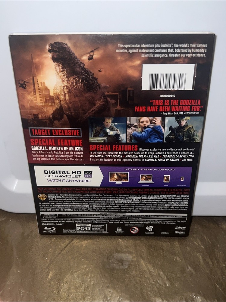 Used: Godzilla (Target) (Blu-ray, 2014) With Slipcover. No DVD or No Digital. DISC MINT CONDITION.. LIKE A NEW! ARTCOVER CASE & SLIPCOVER SHOW SEE IN THE PICTURES CONDITION.. AS SEEN THIS LOT OF PHOTO... WHAT YOU SEE IS EXACTLY WHAT YOU'LL RECEIVE…