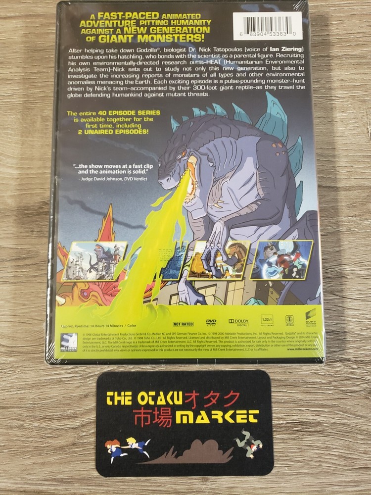 This video is Brand New and factory sealed. -------------------------------------------------------------------------------------------------------------------------- Run Time........... 14 hours, 14 minutes Audio................. English Subtitles............. English Region Code...... 1 Screen Ratio...... 16:9, widescreen -------------------------------------------------------------------------------------------------------------------------- Synopsis: Voices of Ian Ziering, Malcom Danare, Rino Romano. After Dr. Nick Tatopoulos brings down Godzilla, he finds his hatchling and raises it as his own. He recruits a team of specialists known as HEAT and with the 300-ft. reptile offspring in tow, they travel the world researching a new generation of monsters and defending mankind against mutant anomalies. -------------------------------------------------------------------------------------------------------------------------- Shipping: United States Media Mail................. $6.35 / $1.00 as an additional item Ground Advantage..... $9.00 / $2.00 as an additional item Priority Mail................ $13.00 / $3.00 as an additional item Combined Shipping: United States ***This will not work on a smartphone using eBay's app. If that's your option just add all items using the cart to make 1 invoice and any combined shipping rates will be refund at the time of shipment*** Place items into shopping cart. When done shopping, hover over your shopping cart icon at the top right of the page. Click "view cart" from the dropdown box. Click the "request total" hyperlink located at the top right of the group of items you're buying from me. Click "commit to buy & submit request" You'll receive the final invoice shortly thereafter, typically within 12 hours. ***do note that once you do #5 the quantity chosen is automatically removed from inventory, so there's no fear of someone else getting it before you've paid for it. Combined Shipping: International Combined shipping is available, please ask for a quote as eBay's system will no do it automatically.... Any questions please feel free to ask :^)