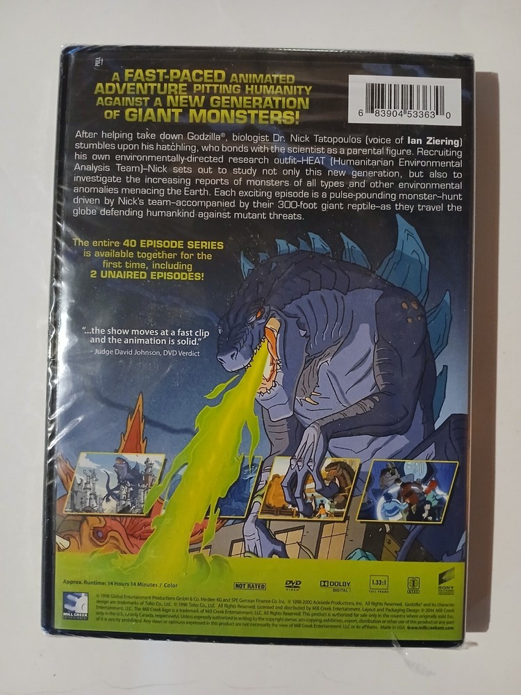 Get ready to unleash epic monster battles with "Godzilla: The Complete Animated Series" on DVD. This thrilling collection from Mill Creek features the entire animated series in NTSC video format, perfect for fans of the legendary Godzilla. Explore 40 action-packed episodes in Region 1 format, guaranteed to keep you on the edge of your seat. With a rating suitable for all ages, this DVD is a must-have addition to any movie and TV collection.