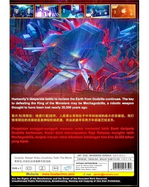Free eBay listing template designed by dewiso.com "Explore, Click, Cherish - NMIBIZ STORE Brings Joy To Every Purchase" Godzilla The Movie 2: Kessen Kidou Zoushoku Toshi DVD Anime ENGLISH Version Free Shipping 🏷️ DVD TITLE : Godzilla 2: Kessen Kidou Zoushoku Toshi (2018) 💿 No. of Discs: DVD x 1 pcs 🎬 Episodes: The Movie 🗣️ Language: English / Japanese 📝 Subtitles: English / Chinese 📀 Media Type: NTSC; Widescreen 16:9 🌍 Region Code: ALL Region, Region FREE "0" 📦 Condition: NEW, Original & Licensed Item 🚚 Free Shipping Synopsis By the advent of the 21st century, much of humanity was dead, having been trampled over by a new master, Godzilla. A select few among mankind took to the stars in a spacefaring vessel called the Aratrum in search of "the promised land," the planet Tau-e that could sustain human life. But the migration plan fails, and the remnants of the human race decide to return to Earth. But the distortions in space-time and the distance traveled means that mankind is returning to a completely changed Earth some 20,000 years later. The returnees, led by hero Haruo, prepare to take the fight to Godzilla based on a strategy that has been 20 years in the making. Carried out with the help of two alien species, the Exif and the Bilusaludo, the humans succeed in defeating Godzilla in a costly battle to the death. But the victory is short-lived. Rising from the depths of the planet is a new breed of monster, dubbed "Godzilla Earth." Evolving for 20,000 years, the creature stands 300 meters high, weighs over 100,000 tons and wields such overwhelmingly destructive power that Haruo and company have no choice but to run for their lives. Coming to Haruo's rescue, however, is Miana, a member of an aboriginal tribe called the Houtua. They are the first humanoid people the returnees have encountered. Could they descend from humans? "Our tribal god was destroyed by Godzilla. All that we have left are these eggs. Anyone who has tried to fight or resist him has been drowned in fire," the tribespeople say to Haruo, who responds with: "This is our last hope of recovering our home." Meanwhile, Bilusaludo commander, Galu-gu is elated to discover that the Houtua tribe's arrowheads are made of a nanometal or a self-sustaining metal. It had been developed in the 21st century as an "anti-Godzilla" killer weapon deployed at their decisive battle fought at the foot of Mt. Fuji, but had been destroyed before it could be activated in the form of a "Mecha-Godzilla." The nanometal was its base substance, and proof that the manufacturing plant can still be used. Customer Satisfaction We hope you're delighted with our service or product. If so, we kindly invite you to leave us a 5-star positive feedback. Your recognition boosts our confidence and drives us to continuously improve our offerings for your satisfaction. In the rare event of any dissatisfaction, we urge you to reach out to us via ebay message before considering 1 or 2 ratings, negative feedback, or initiating any eBay or Payoneer dispute. Your concerns matter to us, and we are committed to resolving any issues promptly. Please grant us the opportunity to address and rectify any concerns you may have. Thank you for choosing us. Your feedback is crucial in our ongoing efforts to provide exceptional service. Payment We are accept payment through eBay Managed Payments Shipping We provide FREE Shipping using Economy Shipping Your item will be shipped with a valid tracking number Handling time is 1-3 working days. Estimated delivery is between 14-26 business days You can choose expedited shipping for faster delivery by selecting the paid option. Estimated delivery is between 4-7 business days Return We provide 30 Days FREE Returns Items can be return within 30 days in a good condition If you have any problems with your order, please contact us via eBay message. We are glad to assist you in solving the problem as soon as possible NMIBIZ STORE