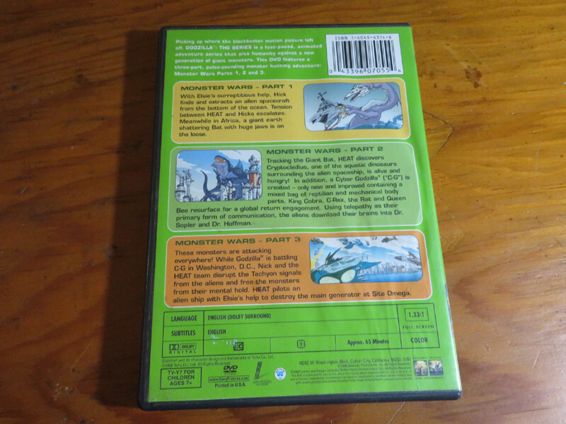 Godzilla: The Animated Series - Monster Wars Trilogy 2004 DVD Sku 043396070554 DVD is used but in good playable condition. DVD may have very light scratches or scuffs, but nothing major and nothing to hinder play. DVD case may have a small amount of damage. Please check out my other diverse item: awesome t-shirts, vintage trucker hats & baseball caps, DVD & VHS movies,collectables, KY Derby horse racing, Coal mining & Eastern Kentucky memorabilia, Harley Davidson Items & promotional patches, antique ceramics, rare books, puzzles and games, promo items, electronics, Disney goodies, retro plush toys, books, hip house wares, unique antiques and much more! Be sure to check back with us to see what unique items I have found to sell! Thank you for your interest. We have tried to represent this item as best we can through photos, description and research, so please take time to read and view all of our photos before placing a bid. We enjoy researching items to the best of our abilities and will share all information that we find in our listings. Please ask questions before bidding. Most of our items are gently used from our collection or from thrift storing, yard sells, or estate sales and are as we found them. We search for items in good condition, and do not repair or restore any items other than minimal cleaning. If an item is stated as being pre-owned or used then it has been used or worn previously and may have minor flaws that come with age, wear and use. If an item does have an issue, we do our best to point out all major flaws through our description and photos, but a pre-owned and used item is not new. Our environment is smoke-free; however, we cannot guarantee that all the items we sell come from the same environment. If you have any further questions, please feel free to contact us. We would be glad to help you. Payment policy: PayPal is the only form of payment accepted at this time. Payment is due within 4 days after the auction ends, and is automatically turned over to eBay's Unpaid Item Assistant after the fourth day. International bids not accepted at this time. Combined shipping information: We are glad to combine shipping on multiple items to save you on shipping cost. Please notify us in advance that you are bidding on multiple items and contact us when you have won all the items you are bidding on. Please note that we cannot combine items after they have been paid for! Shipping information: After receiving payment, items will ship within two business days via USPS. A small handling fee of $.60 is also included to cover packaging supplies (envelopes, paper, Tape, printer ink, plastic bags, gas to Post Office, etc.) for safe delivery of the item. Items that can be shipped safely in manila envelopes (clothing, hats, small plush toys, books, etc.) will be shipped that way to save you on shipping costs. If you would like these smaller unbreakable item(s) shipped in a box, please contact us before paying so we can add the cost of a box and additional weight to your invoice. Return policy: Returns are accepted within 14 days. We refund only the purchase price after the return of item in the condition sent. Shipping charges are not refundable. Buyer pays return shipping cost. If you do have a concern or issue with an item you have purchased from us, please contact us so that we can try to resolve the issue. Contact information: We check eBay for messages several times daily. Please contact us if you have any questions &/or concerns about any of our items.