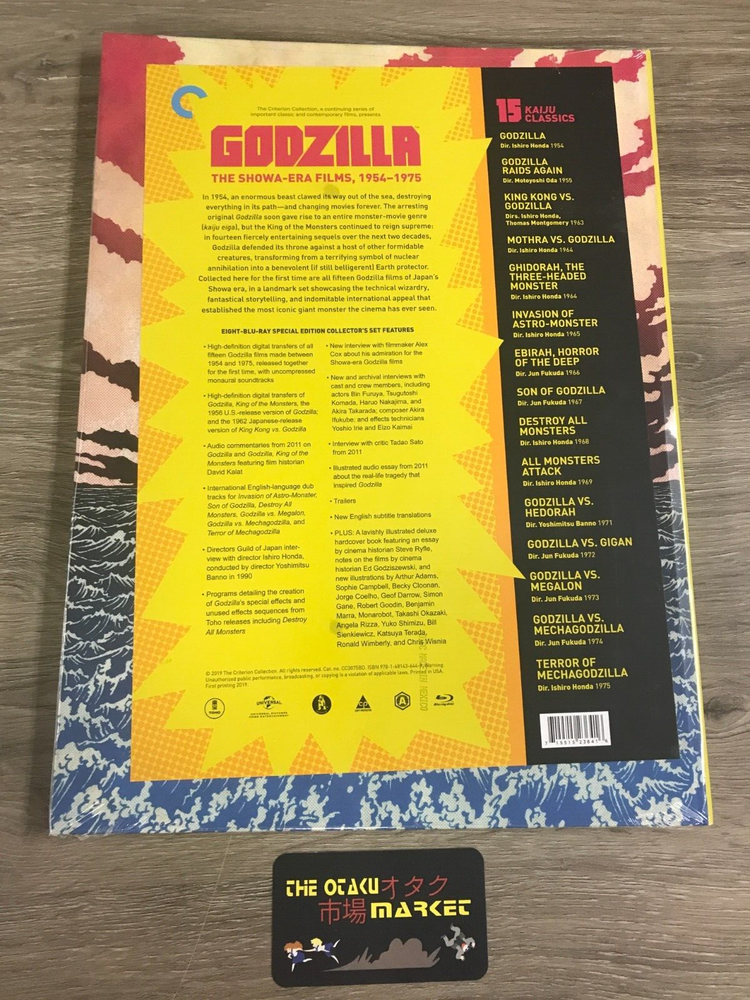 This video is Brand New and factory sealed. -------------------------------------------------------------------------------------------------------------------------- Run Time........... See description below for each film's run time. Audio................. See description below for each film. Subtitles............. See description below for each film. Region Code...... A Screen Ratio...... 16:9, widescreen -------------------------------------------------------------------------------------------------------------------------- Synopsis: Godzilla: The Showa-Era Films, 1954-1975 (Criterion Collection) In 1954, an enormous beast clawed its way out of the sea, destroying everything in its path—and changing movies forever. The arresting original Godzilla soon gave rise to an entire monster-movie genre (kaiju eiga), but the King of the Monsters continued to reign supreme: in fourteen fiercely entertaining sequels over the next two decades, Godzilla defended its throne against a host of other formidable creatures, transforming from a terrifying symbol of nuclear annihilation into a benevolent (if still belligerent) Earth protector. Collected here for the first time are all fifteen Godzilla films of Japan’s Showa era, in a landmark set showcasing the technical wizardry, fantastical storytelling, and indomitable international appeal that established the most iconic giant monster the cinema has ever seen. Eight-disc set includes: Godzilla (1954) Atomic testing in the Pacific awakens a gigantic reptilian creature dubbed Godzilla off the coast of Japan and sends the monstrous menace on a rampage across Tokyo and its environs. Director Ishiro Honda's "kaiju" classic spawned innumerable sequels; Akihiko Hirata, Takashi Shimura, Momoko Kochi, and Haru Nakajima star. Includes the original Japanese release "Gojira" and the 1956 re-dubbed American version "Godzilla, King of the Monsters," with Raymond Burr. 96 min. In Japanese with English subtitles/Dubbed in English. Godzilla Raids Again (1955) While flying over a remote island, two pilots spot Godzilla (which may or may not be the same Big G supposedly destroyed in the first film) fighting with another creature, the spine-covered Anguirus. When the beasts' battle brings them to mainland Japan, officials must find a way to stop their destructive "monster mash." Minoru Chiaki, Hiroshi Koizumi star. 82 min. In Japanese with English subtitles King Kong vs. Godzilla (1962) It's the showdown monster fans dreamed of, as the great ape is found alive and well (!) in the South Seas and brought to Japan, where he has an all-out slugfest atop Mt. Fuji with the mean, green lizard king. Michael Keith, James Yagi, and Mie Hama co-star alongside the two biggest titans in movie history. 91 min. In Japanese with English subtitles. Mothra vs. Godzilla (1964) A giant egg washes up on a Japanese beach and is taken to a Tokyo amusement park. But when the egg's mother--the winged wonder known as Mothra--shows up to reclaim it, and a revived Godzilla is on the rampage in Tokyo, the stage is set for a monster-sized showdown. Akira Takarada, Yuriko Hoshi, and the Ito Sisters star. 89 min. In Japanese with English subtitles. Ghidorah, The Three-Headed Monster (1964) Mothra, Rodan, and the king of them all, Godzilla, join forces to protect the Earth from the alien menace of King Ghidorah, a thrice-domed, golden-scaled, bat-winged beastie with designs on widespread property destruction. This spectacular monster mash solidified the green guy's conversion from villain to hero. Yosuke Natsuki, Yuriko Hoshi star. 93 min. In Japanese with English subtitles. Invasion Of Astro-Monster (1965) An alien planet asks to "borrow" Earth monsters Godzilla and Rodan to help them defeat their own indigenous menace, triple-headed Ghidorah, who moved off-world after his defeat in the 1964 film that bore his name (how embarrassing). Little do the gargantuan good guys know it's all part of a sinister invasion plot. Nick Adams stars as an Earth astronaut. 94 min. In Japanese with English subtitles/Dubbed in English. Ebirah, Horror Of The Deep (1966) Remember those Sea Monkeys you had as a kid? Well, one of them's 160 feet long and being used by a terrorist group out to take over the world! Good thing their island base is also home to Godzilla, who teams with Mothra to turn the colossal crustacean into so much shrimp cocktail. Akira Takarada, Jun Tazaki star. AKA: "Godzilla vs. The Sea Monster." 88 min. In Japanese with English subtitles. Son Of Godzilla (1968) It's not easy being a single parent, especially when your island home is invaded by giant spiders and praying mantises and teeny little Japanese scientists. Watch as Godzilla fils and pere make the world safe for giant lizards. Stars Akira Kubo, Tadao Takashima, Akihiko Hirata; directed by Jun Fukuda. 86 min. In Japanese with English subtitles/Dubbed in English. Destroy All Monsters (1968) The "It's A Mad, Mad, Mad, Mad World" of Japanese creature features finds invaders from the planet Kilaak taking control of Rodan, Mothra, Angurus, Baragon, and Godzilla and his son, plus the other inhabitants of Monster Island, then dispatching them to attack the world's major cities as part of the aliens' plan to conquer Earth. All this, and Ghidrah, too! 85 min. In Japanese with English subtitles/Dubbed in English. All Monsters Attack (1969) Jolly green goliath Godzilla teams up with son Minya to help a young boy cope with troubles from school bullies, while simultaneously defending Monster Island from the nasty Gabara, in this lighthearted entry in the Toho series. Tomonori Yazaki, Kenji Sahara, Eisei Anamoto star. 69 min. In Japanese with English subtitles. Godzilla vs. Hedorah (1971) When Hedorah, a glistening glob of goo created from man's pollution, starts stinking up Tokyo, everybody's favorite lethal lizard makes like Woodsy Owl to eliminate the monster and his mess. Action-filled and relevant sci-fi slugfest features the hit song "Save the Earth.
