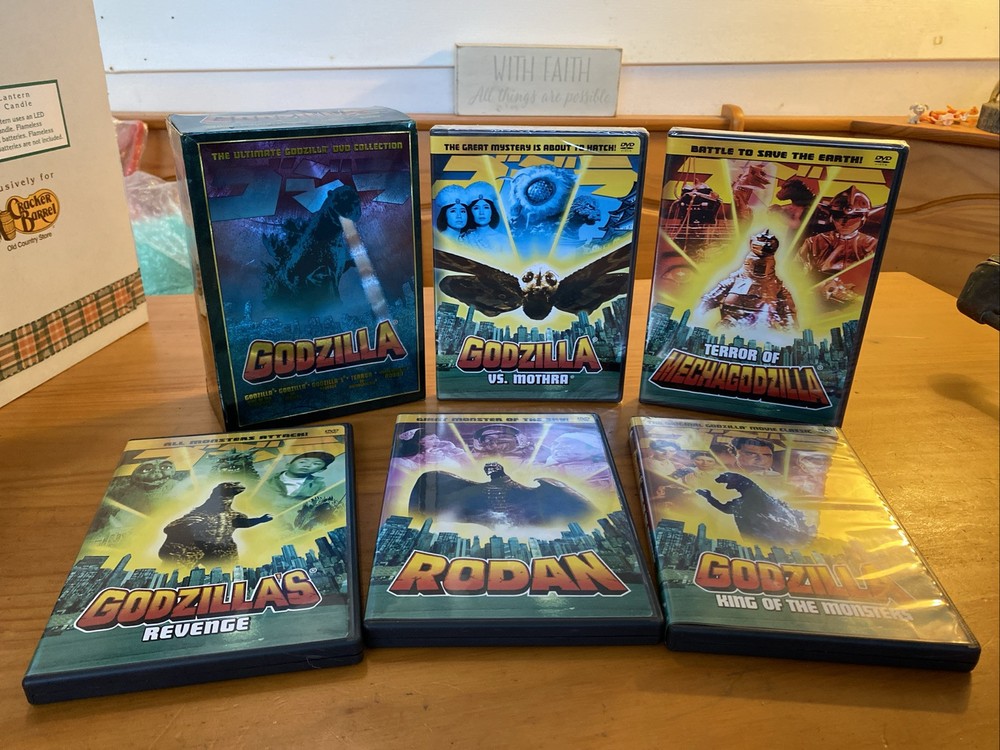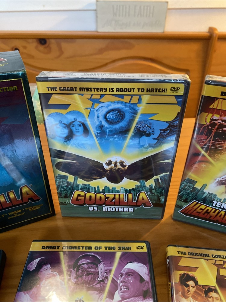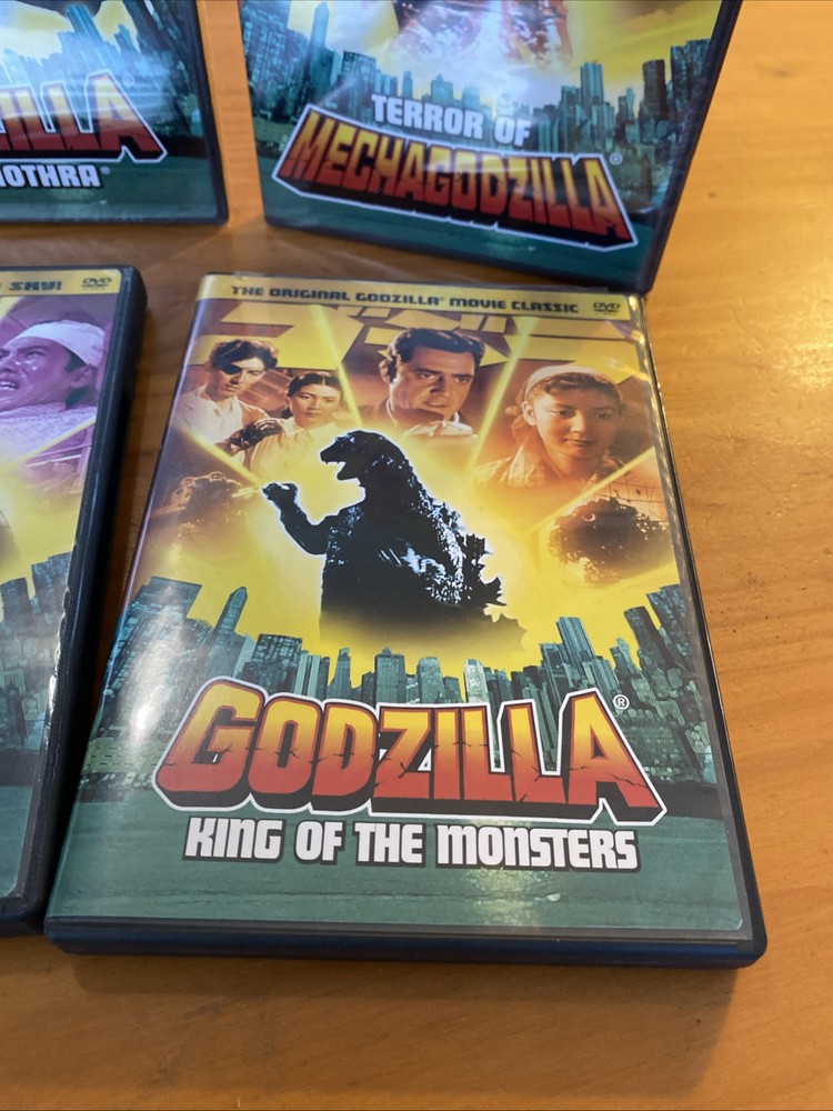 THE ULTIMATE GODZILLA DVD COLLECTION Disc Play sides are like new condition. Plastic Cases very good condition Outer Box Case has wear as pictured godzilla versus monthra is sealed terror of mechagodzilla is sealed as well . Photos of actual items. Check out photos for details. A great addition to any collection!