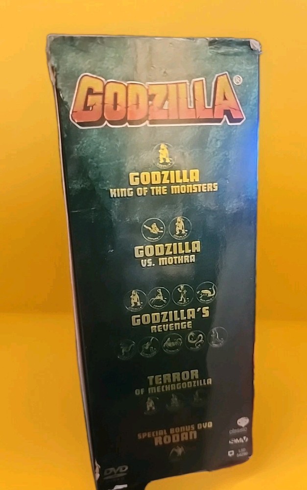 Please see pics. Box has some damage but the dad's appear to have never been opened and watched. Experience the thrill of the iconic monster with "Godzilla - The Ultimate 5-Pack Collection" on DVD. This 5-disc set features the legendary action and adventure of Raymond Burr as he takes on the King of Monsters. With a release year of 2002, this collection is a must-have for any fan of the genre. Get ready to be entertained with some of the most exciting and thrilling moments in movie history.