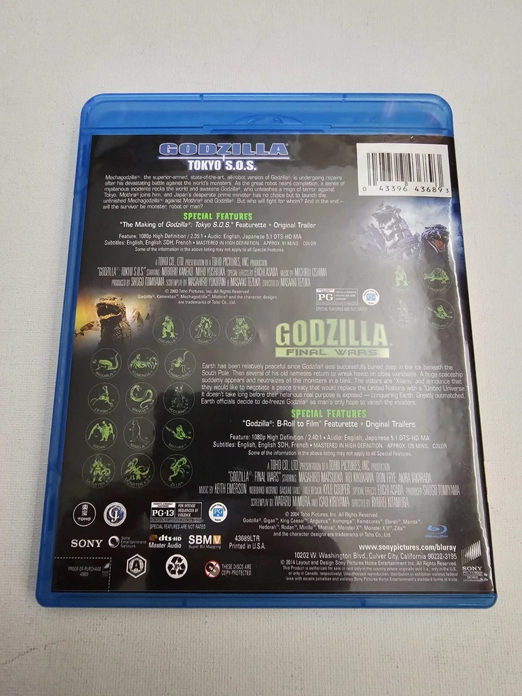 Godzilla: Tokyo S.O.S. / Godzilla: Final Wars (Blu-ray, 2004). Condition is Like New. Shipped with USPS Media Mail.