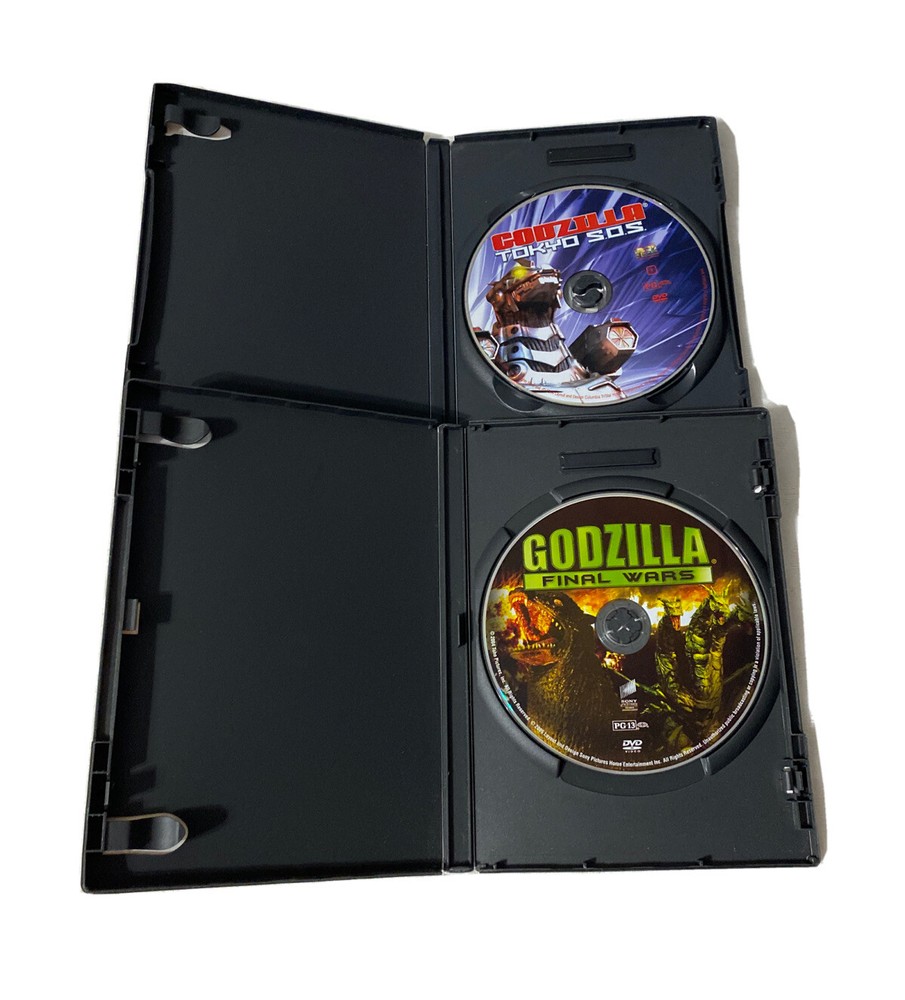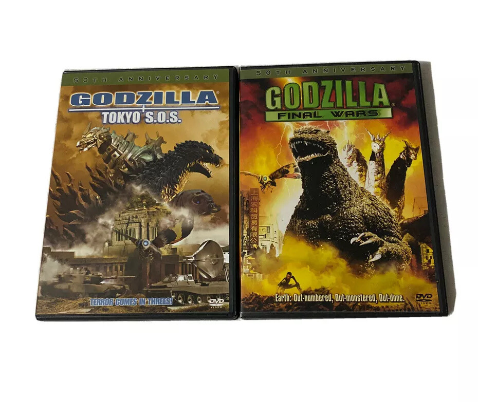 Godzilla Tokyo S.O.S. & Godzilla Final Wars DVDs set/lot. Both untested but in overall very good condition. Tokyo SOS has a small dent in the back bottom of the case. OOP rare 50th anniversary edition.