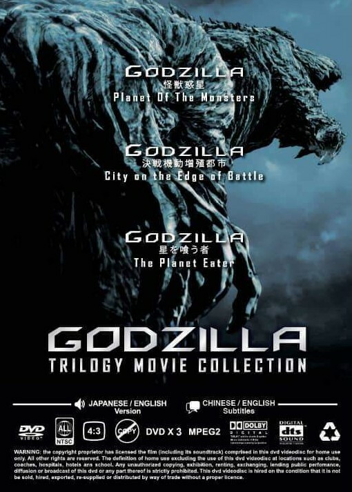 This is Original DVD set from Malaysia With Malaysia Government issue Hologram. Playable in DVD Player Worldwide Godzilla Trilogy Movie Collection. Dual audio. English Dubbed. Product details :- 1. Godzilla Part 1 Planet of the Monsters 2.Godzilla Part 2 City on the Edge of Battle 3.Godzilla Part 3 The Planet Eater 100% Brand New & Sealed Ready Stock Video : Format : NTSC Aspect Ratio : 4:3 Audio : Languages : English Channel(s) : 2 channel(s) Bitrate / Sampling Rates : 16 Bit 192kps / 48.0 kH Languages : Japanese Channel(s) : 2 channel (s) Bitrate / Sampling Rates : 16 Bit 192kps / 48.0 kHz Subtitles : English Format : DVD 3 Disc All Region Payment : Paying for items with PayPal on eBay is simple and secure. It's also the payment method most commonly accepted by our sellers. Feedback : Positive feedback is provided on every transaction you make with us and we hope that you do the same Your support will help us developing our business Please give us a chance to resolve the problem for you, we will do our best to satisfy you
