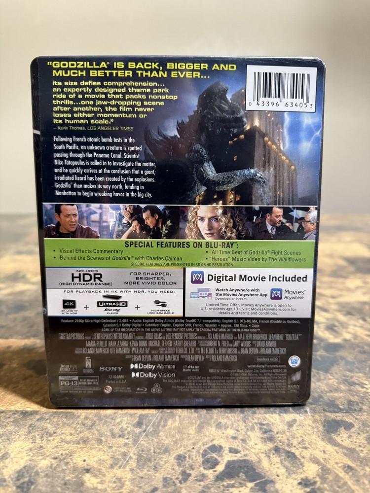 Experience the thrill of the classic science fiction movie "Godzilla" in stunning Ultra HD quality. This 1998 release, directed by Roland Emmerich, is a must-have for fans of the genre. The movie is presented in English, with multiple subtitle language options, and has a run time of 139 minutes. The DVD comes in a sealed package, making it a perfect addition to your collection. The aspect ratio is 2.40, and the movie is rated PG-13. Additionally, the DVD includes a variety of special features, making it a great choice for those who want to delve deeper into the world of Godzilla. Get your hands on this classic movie today! Brand new and sealed.