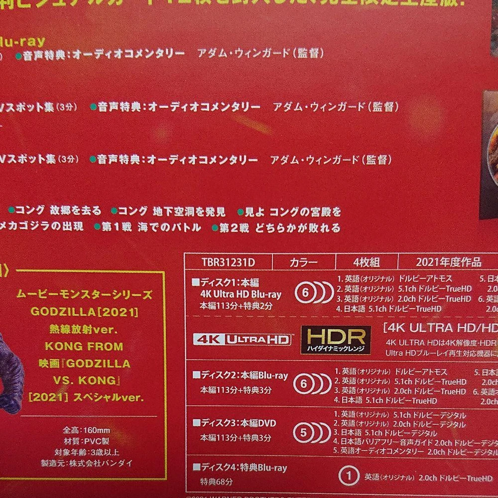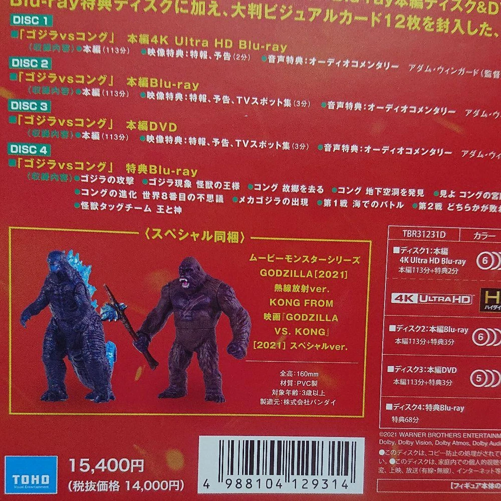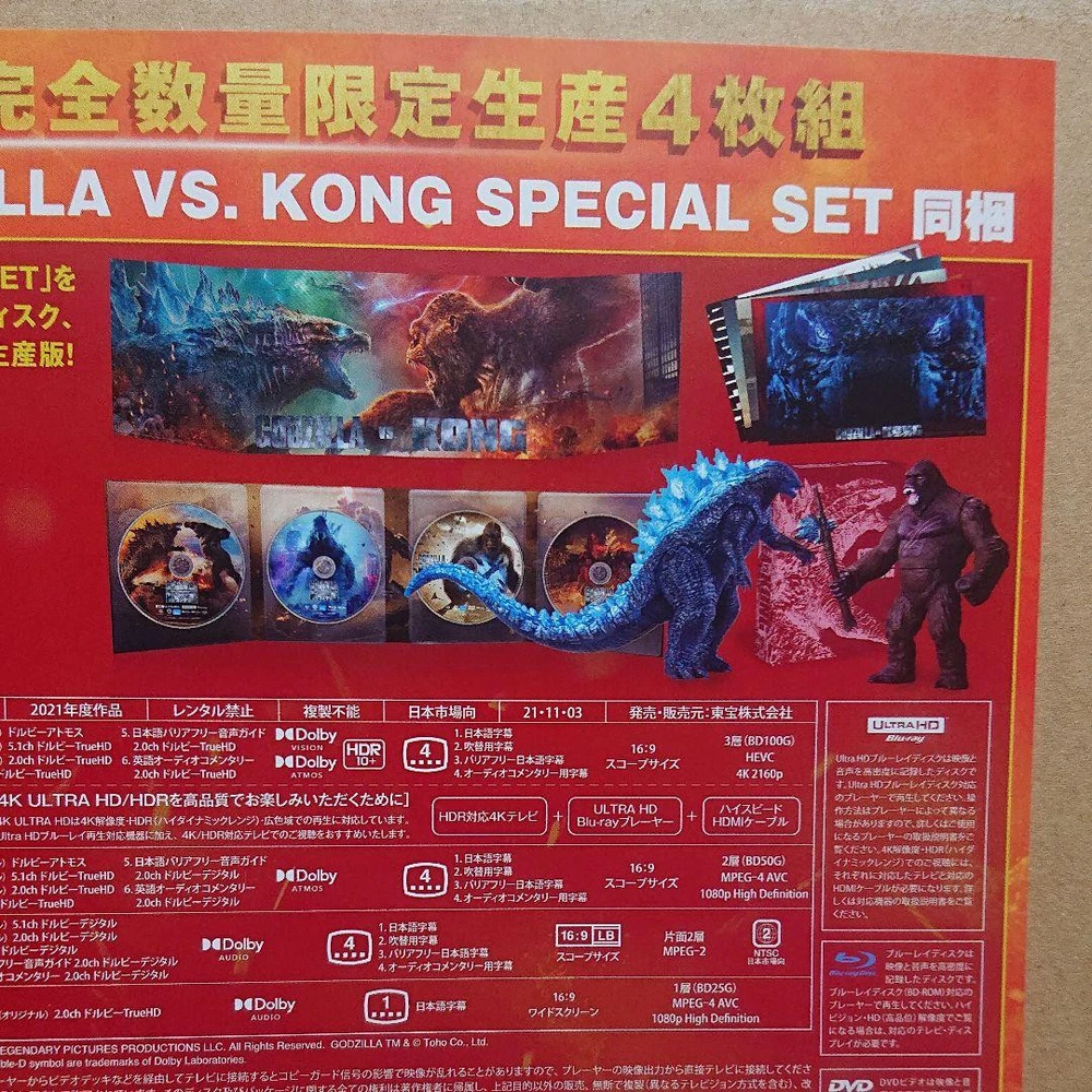 Item Description Purchased by order. I opened it, but it's as new. *All of them are available, the box is damaged. 《Includes DVD, Blu-ray set, and 2 limited edition soft vinyl units. 》 ◎Godzilla 2021/Heat Radiation Ver. ◎KONG 2021/Special Ver. GODZILLA VS. KONG Toho movies Movie Monster Series Bandai Shipping Domestic Shipping(United States) Expedited shipping FreeShipping Economy shipping Shipping Cost : $10.00 International Shipping Economy Int'l Shipping Shipping Cost : $0.00 Americas Payment eBay Managed Payment Other Term important Import duties,taxes and chenges are not included in the item price or shipping charges. These charges are the buyer's responsibility. Please check with your country's customs office to determine what these additional costs will be prior to bidding/buying. These charges are normally collected by the delivering freight(shipping) company or when you pick the item up. -do not confuse them for additional shipping charges. We do not mark merchandise values below value or mark items as """"gifts"""". -US and international government regulations prohibit such behabior.