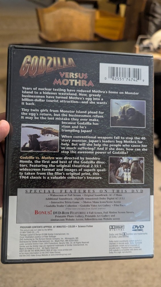This listing is for a used condition DVD copy of Godzilla Versus Mothra (1964) and comes with the original case, original artwork, and the original feature film DVD disc. There is NO Blu-ray or 4K disc copy, NO slipcover, and NO Digital Code provided with this listing. You will be receiving the EXACT item in the photos as it is pictured. Item has been tested working prior to listing. Case shows mild signs of shelf wear. Disc is in good shape. This item will ship in a bubble mailer. Any special notes about THIS item will be located below in red font: NO SPECIAL NOTES FOR THIS ITEM Please let me know if you have any questions! Thank you for looking :) ~Scott Schramm Ebay Seller