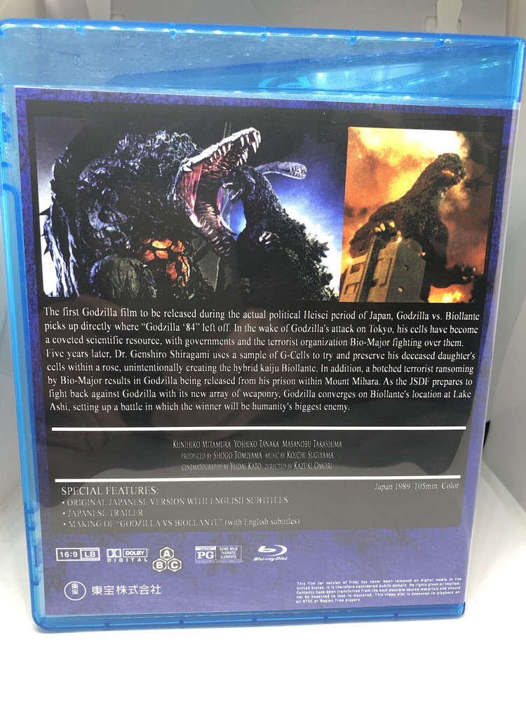 For sale is Godzilla vs Biollante on bluray. This is an unofficial, 3rd party release. Used copy, only played a handful of times. This disc is region free, features the Japanese dub and has English subtitles. Also includes special features. A cheaper alternative to the original expensive, out of print bluray release, with similar/equal video quality. Disc, case and cover were not made by me.