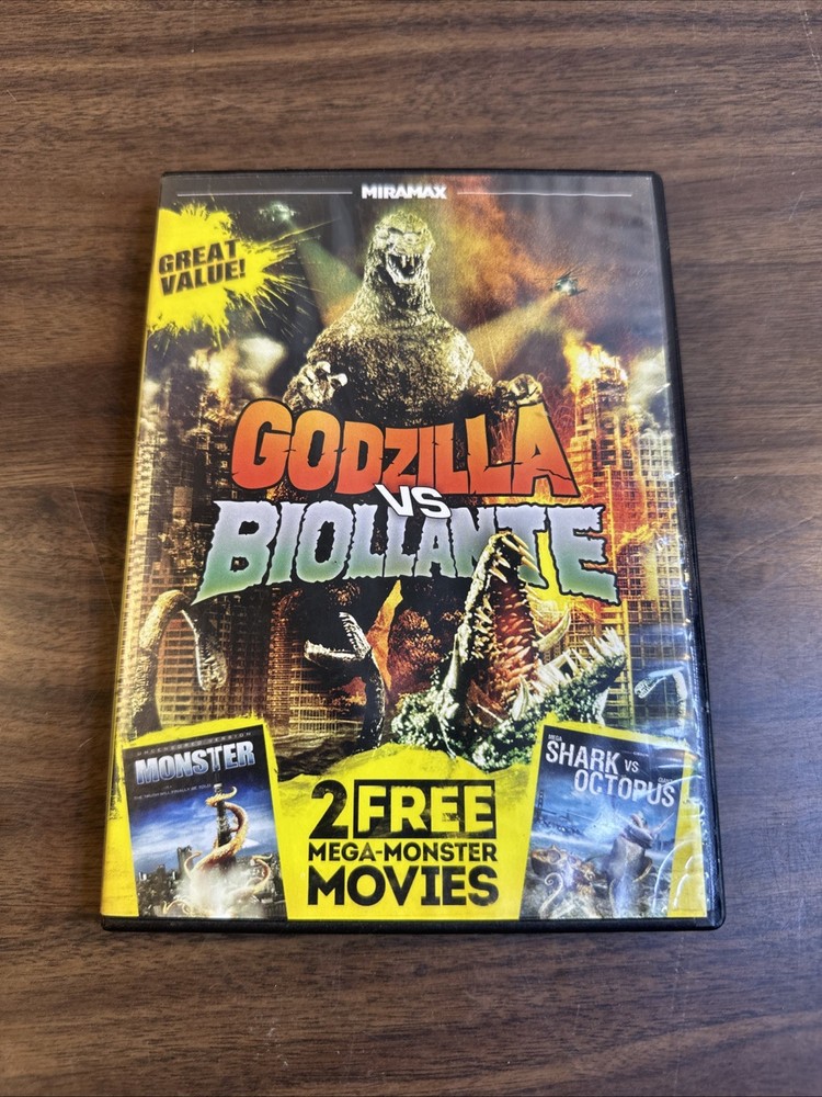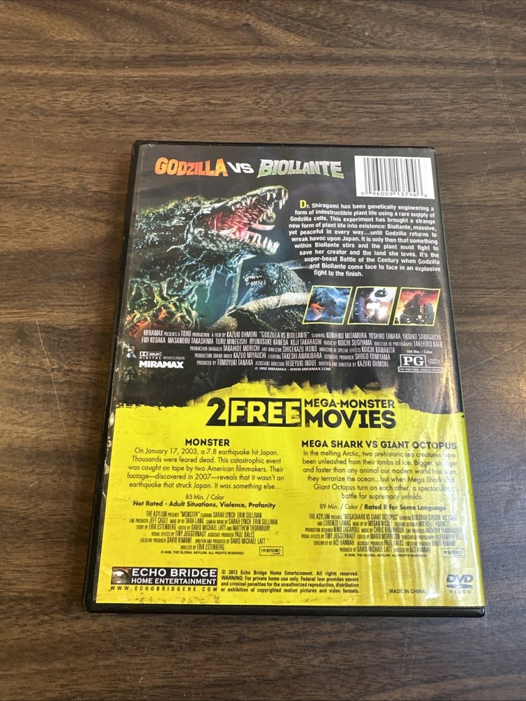The product is a DVD featuring the movies "Godzilla Vs. Biollante," "Monster," and "Mega Shark vs. Giant Octopus." Released in 2013, this DVD falls under the genres of horror and horror/suspense, with a rating of NR. The DVD is formatted for Region Code 1 (US, Canada) and includes multiple movies featuring different iconic monsters and creatures battling it out in epic showdowns. Fans of horror films and action-packed monster battles would likely enjoy this collection of thrilling movies on DVD.