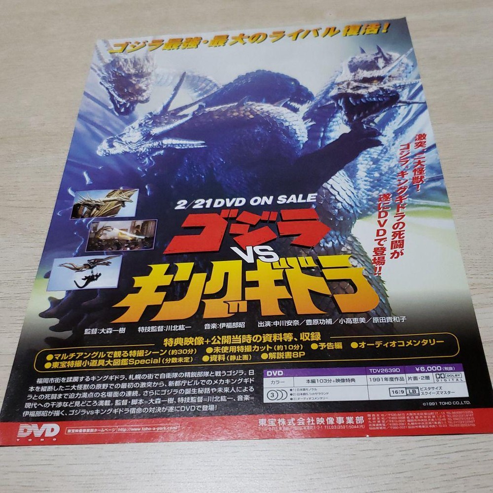 This Godzilla vs. King Ghidorah DVD flyer is a must-have for any kaiju fan! The artwork is vibrant and crisp, capturing the epic battle perfectly. Fast shipping from Japan, and the seller is super responsive. A great addition to any collection—highly recommended!