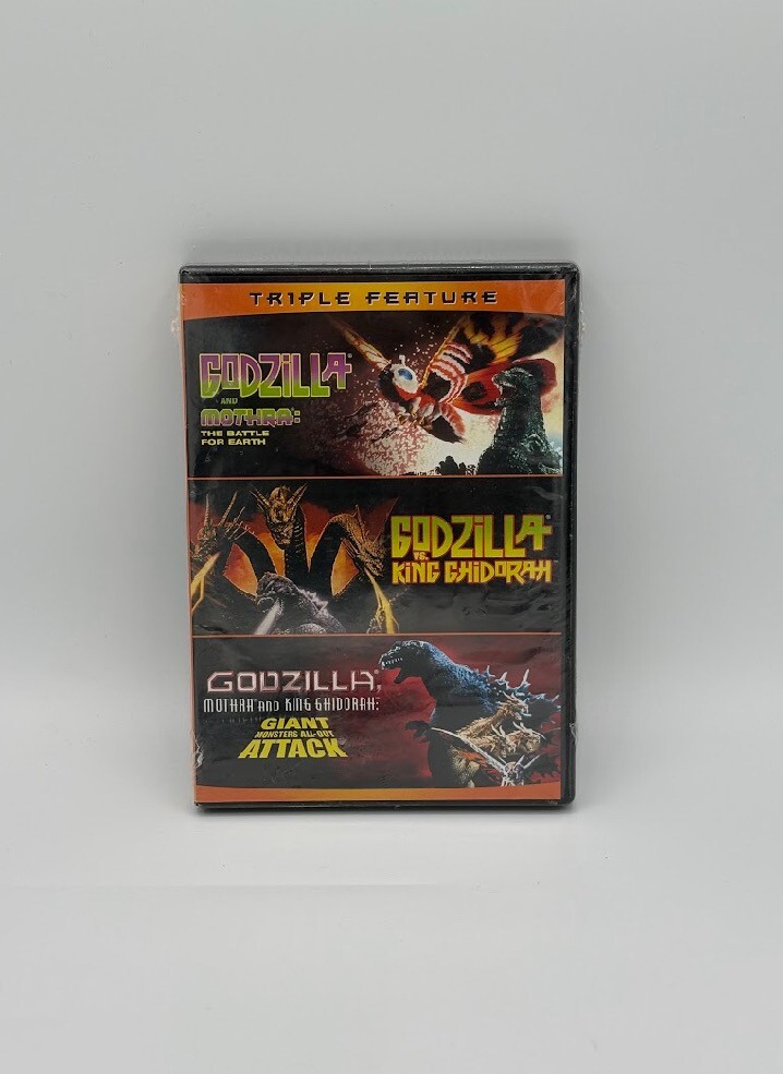Godzilla Vs. King Ghidorah / Godzilla Vs. Mothra (1992) / Godzilla, Mothra, and King Ghidorah: Giant Monsters All-Out Attack - Set Unleash the ultimate kaiju showdown with this epic Godzilla triple feature set! Packed with three thrilling films from the legendary Godzilla franchise, this set delivers action-packed battles between Godzilla , King Ghidorah , and Mothra , offering hours of monstrous mayhem for fans and collectors alike. Key Features: Three Classic Godzilla Films : Godzilla Vs. King Ghidorah (1992) : Watch as Godzilla takes on the three-headed dragon, King Ghidorah , in a battle of titanic proportions. Godzilla Vs. Mothra (1992) : Witness Godzilla face off against the majestic yet fierce Mothra in a stunning clash between titanic creatures. Godzilla, Mothra, and King Ghidorah: Giant Monsters All-Out Attack (2001) : A thrilling and modern entry into the series where Godzilla , Mothra , and King Ghidorah all come together for an explosive battle that shakes the very foundations of the Earth. Brand New and Sealed : This set is brand new and remains sealed in its original packaging, guaranteeing pristine, unused condition for your collection. Monstrous Battles : Get ready for non-stop action as Godzilla squares off against some of his most fearsome foes in colossal, city-crushing battles filled with special effects and kaiju mayhem. Special Features : Includes bonus content, behind-the-scenes footage, and insightful retrospectives about the creation and impact of these iconic films in the Godzilla franchise. Perfect for Collectors and Fans : This set is an essential addition for any Godzilla fan, providing a powerful mix of classic and modern monster film magic all in one place. The Godzilla Vs. King Ghidorah / Godzilla Vs. Mothra (1992) / Godzilla, Mothra, and King Ghidorah: Giant Monsters All-Out Attack set brings together the ultimate kaiju action for your viewing pleasure. Don't miss out on this exciting triple feature, now available for fans and collectors seeking to relive these legendary monster battles!