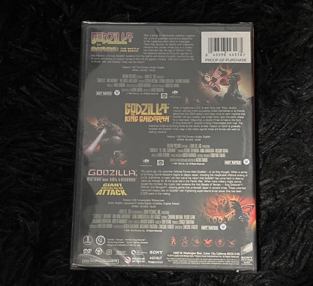This Godzilla Triple Feature DVD set is a must-have for fans! The discs play perfectly with crisp audio and video, and the cases show only minor wear. Godzilla vs. King Ghidorah (1992) looks fantastic, and having three classic films in one set is a steal. Great value for any kaiju lover!
