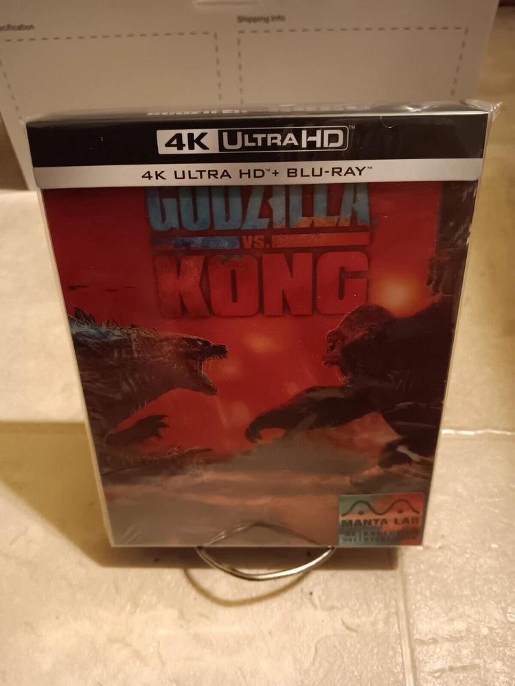 Godzilla Vs. Kong 4K Lenticular SteelBook (Hong Kong)(4K Blu-ray/Blu-ray) No Dents, Loose Disc or a Spine Slash (Before Opening) Hong Kong is Region A, Same as USA Customs Friendly - Combined Shipping for All Countries (Look Below) Manta Lab Version - Region Free - Ships in a Box - Ships Next Day This is for Godzilla Vs. Kong 4K Lenticular SteelBook from Hong Kong. This includes the 4K & blu-ray disc of the film in a SteelBook case. (All 4K discs are Region Free) There are no dents on the SteelBook as far as I can see. Due to being unopened I can't be responsible for any damage once item is opened. Please inspect SteelBook before opening. This also comes with a SteelBook protective case. These editions are also numbered, the picture may not be the exact number you receive. These discs are the Hong Kong version but may also contain audio and subtitles for other languages. If there are no details below contact me to find out. I am willing to ship anywhere in the world. This will be shipped in a box for protection and all shipments come with a tracking number . Combined Shipping for all Countries for additional items purchased (Please contact after purchase) Remember To Look At My Other Items!