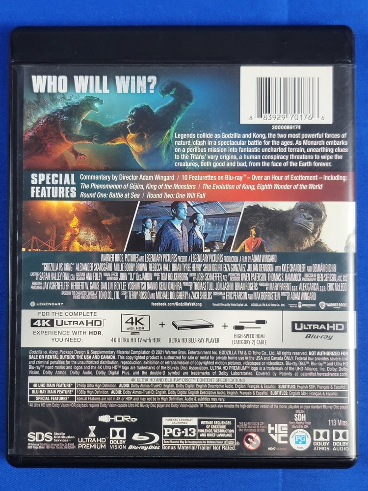 Up for sale is this very nice Godzilla Vs. Kong - 4K Ultra HD + Blu-Ray. Comes as shown. Free Shipping.