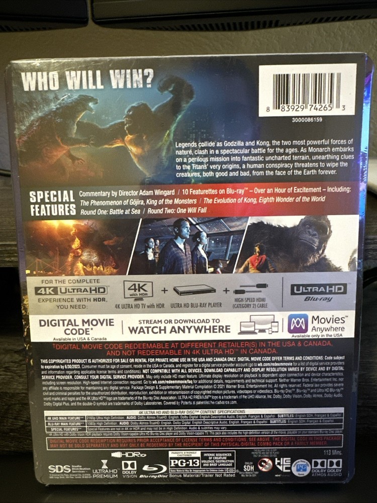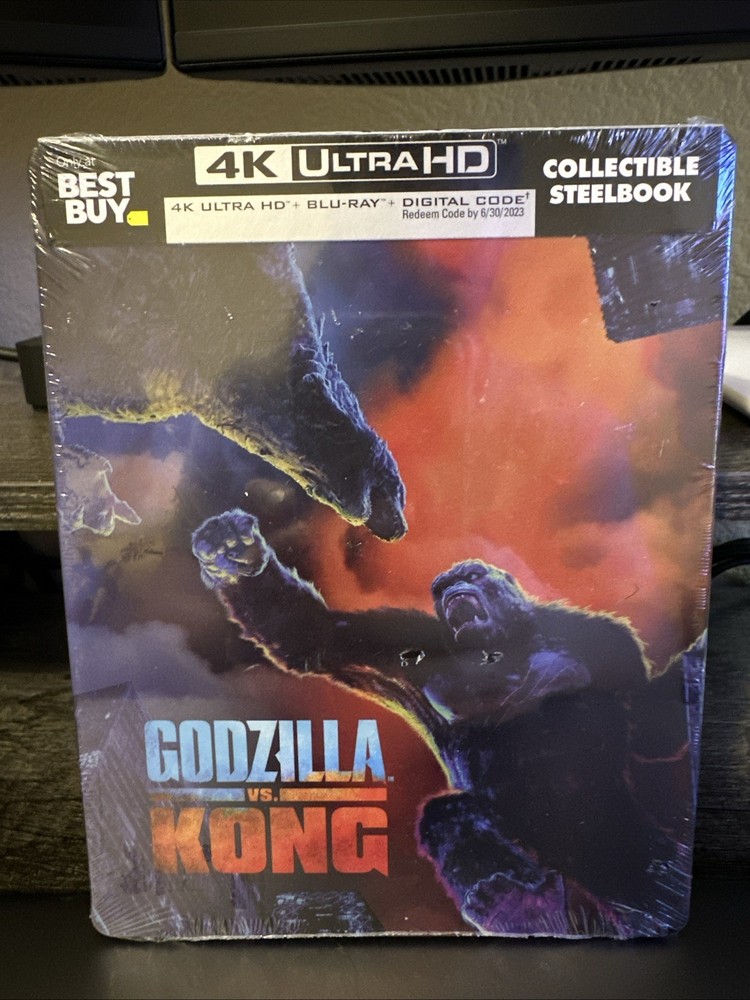The product is a brand new steelbook edition of the movie "Godzilla vs. Kong" on Blu-ray. This special edition includes a 4k digital copy of the film as well as a digital copy, all housed in a sleek steelbook packaging. Fans of the popular Godzilla franchise will enjoy this high-quality and collectible addition to their movie collection, featuring two of the most iconic monsters in cinematic history.